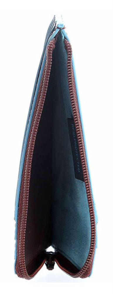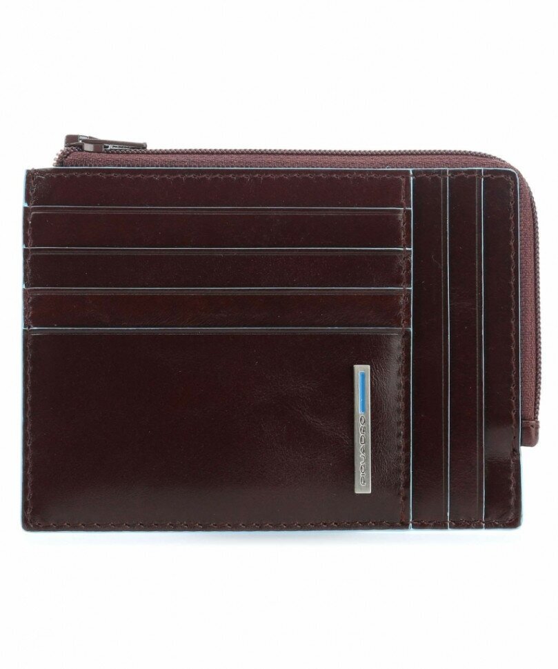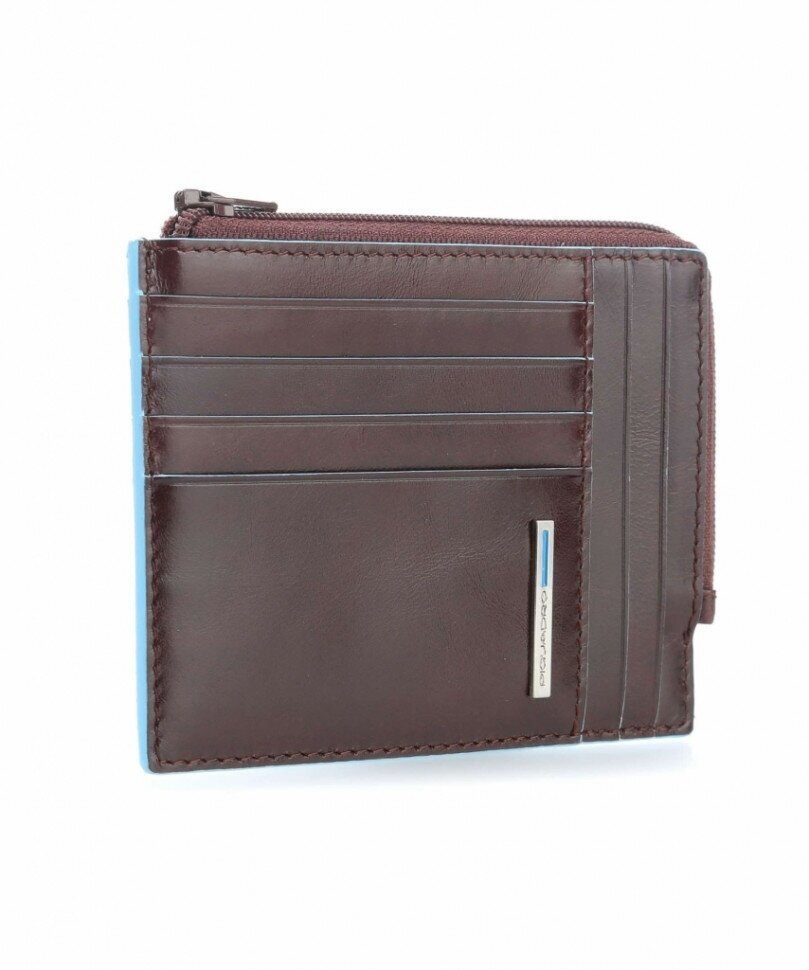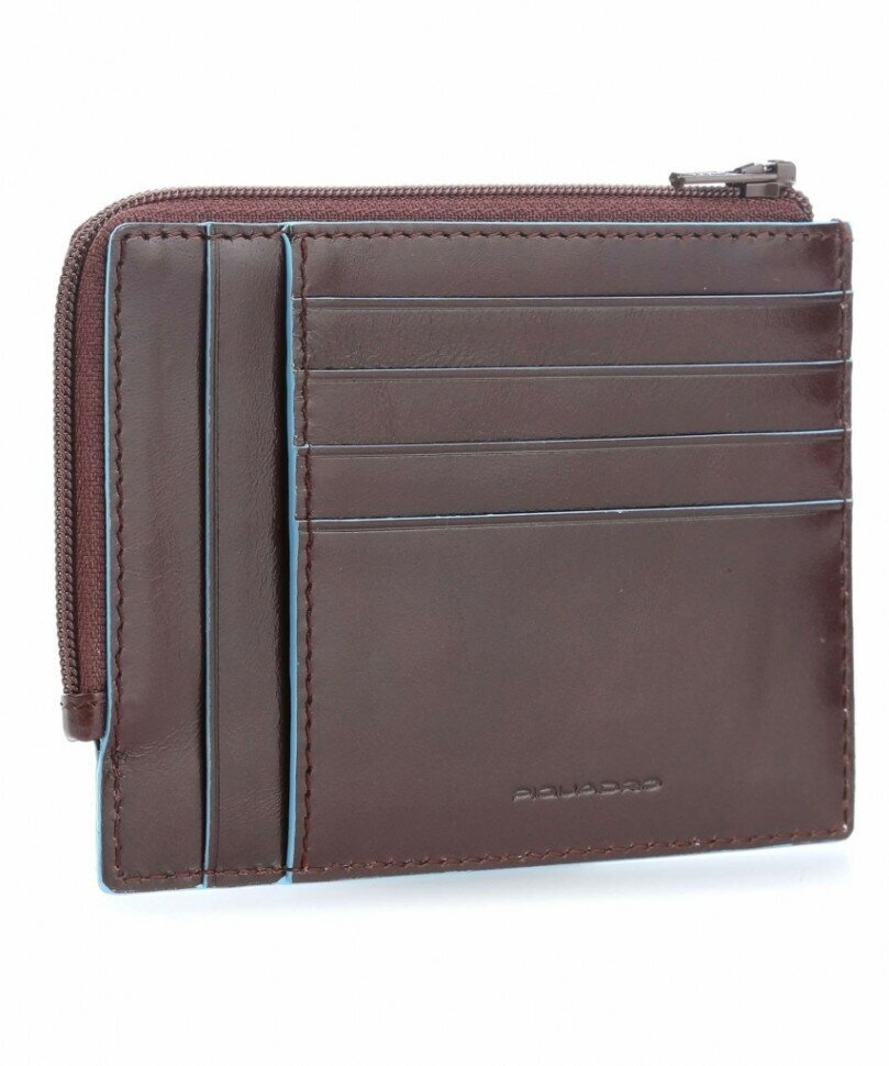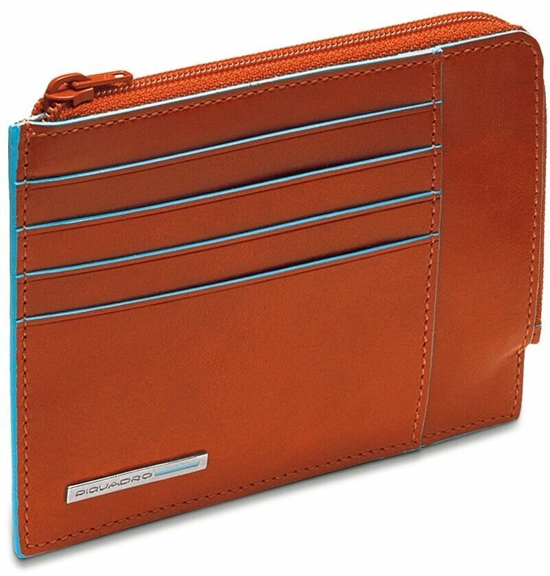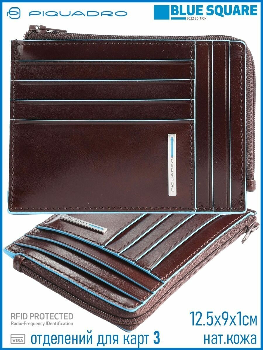 Чехол для кредитных карт с отделением для монет перегородкой для документов и от компании Piquadro, коллекция Blue Square. Натуральная телячья кожа. Оторочка по канту - голубым. Отделение для монет на молнии. Фирменная упаковка.