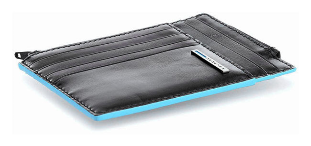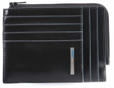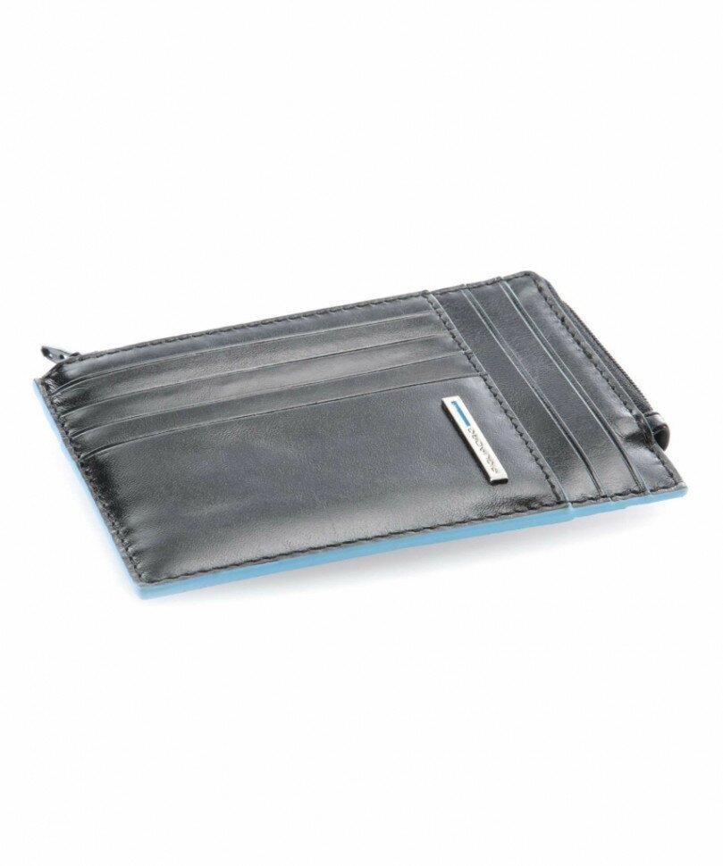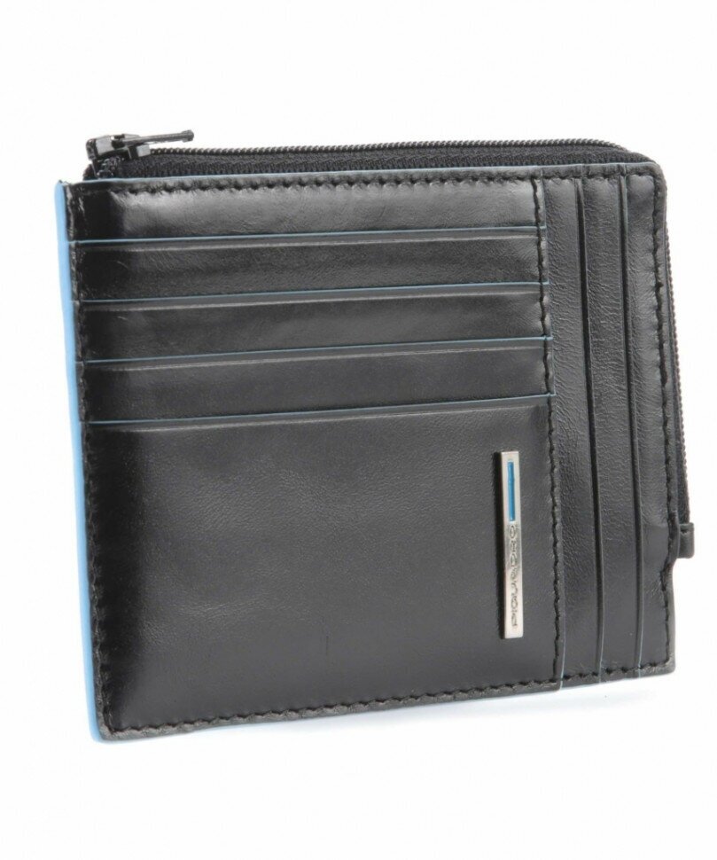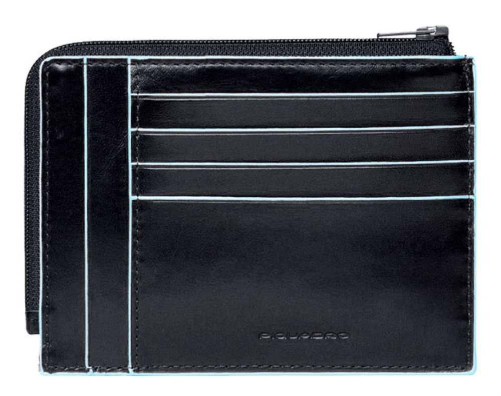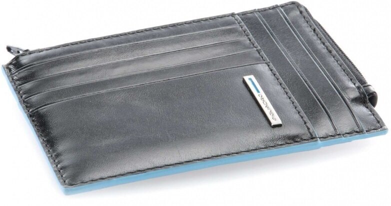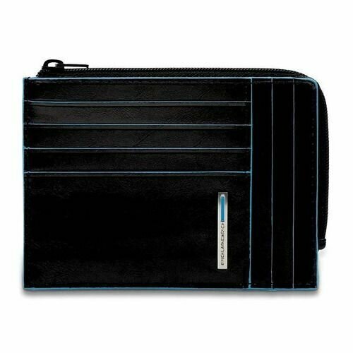 Чехол для кредитных карт с отделением для монет перегородкой для документов и от компании Piquadro, коллекция Blue Square. Натуральная телячья кожа. Оторочка по канту - голубым. Отделение для монет на молнии. Фирменная упаковка.