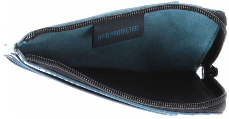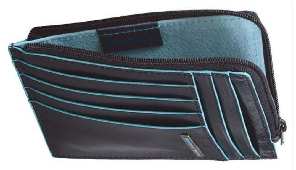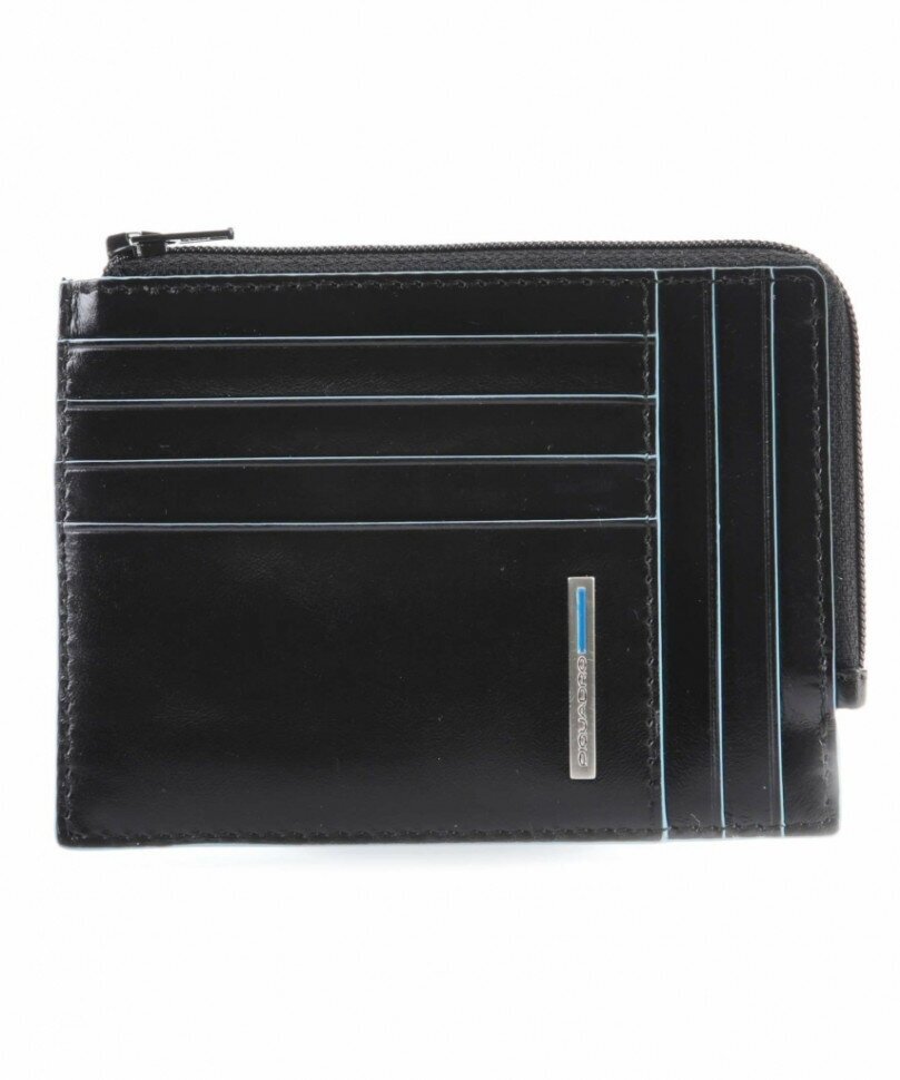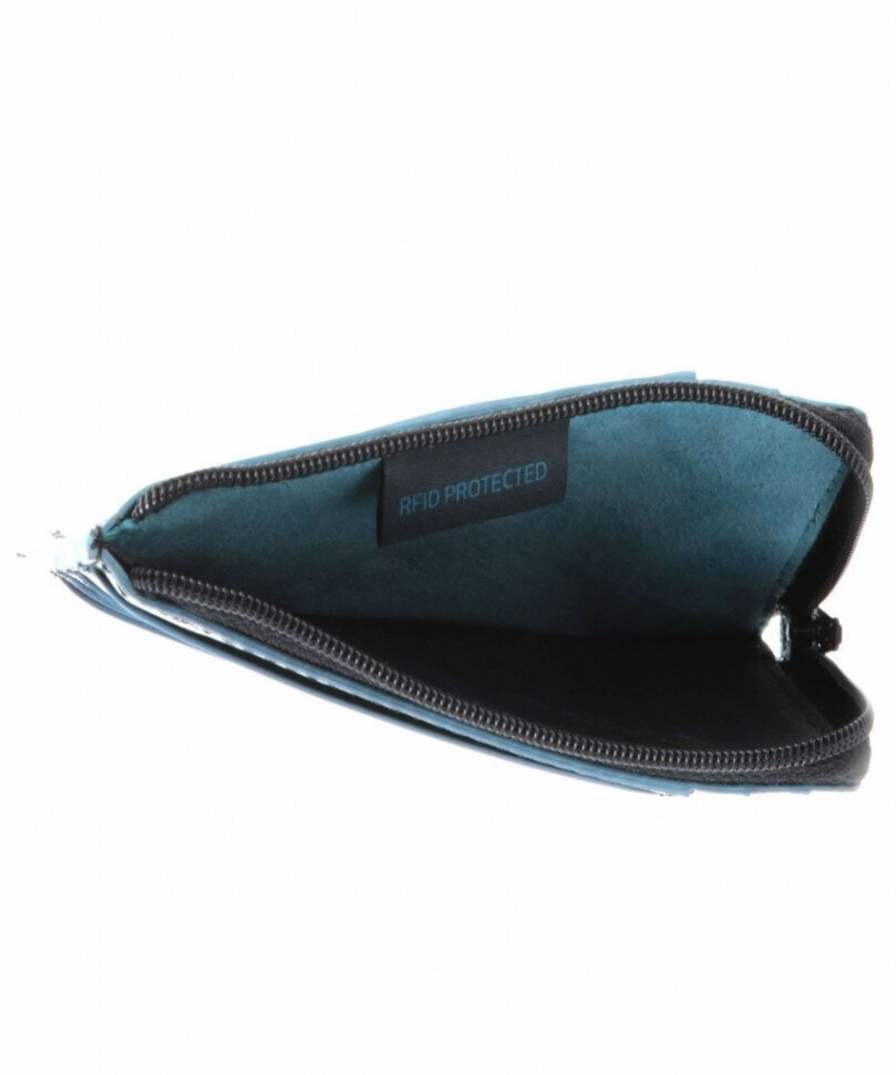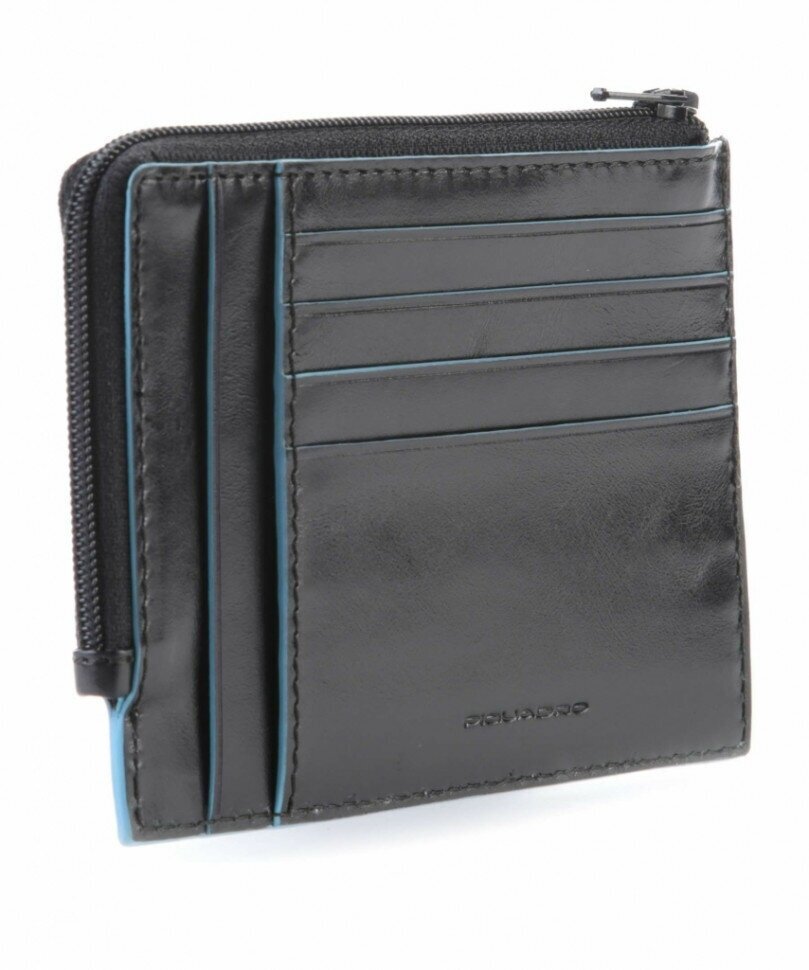 Чехол для кредитных карт с отделением для монет перегородкой для документов и от компании Piquadro, коллекция Blue Square. Натуральная телячья кожа. Оторочка по канту - голубым. Отделение для монет на молнии. Фирменная упаковка.