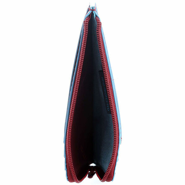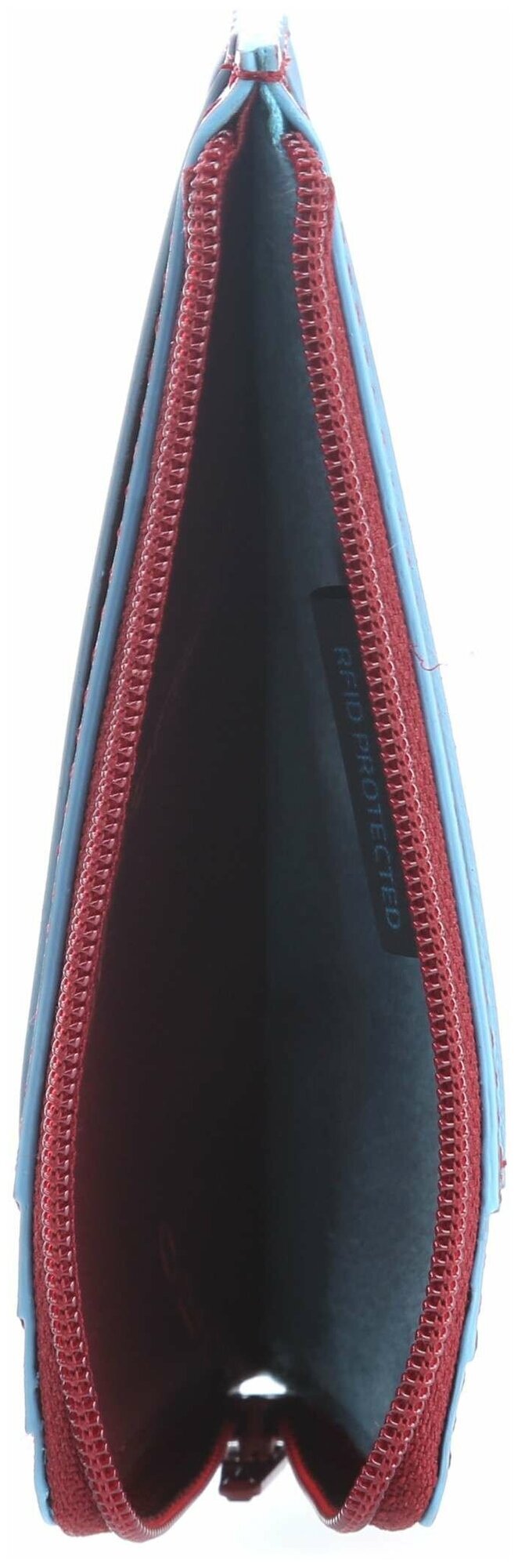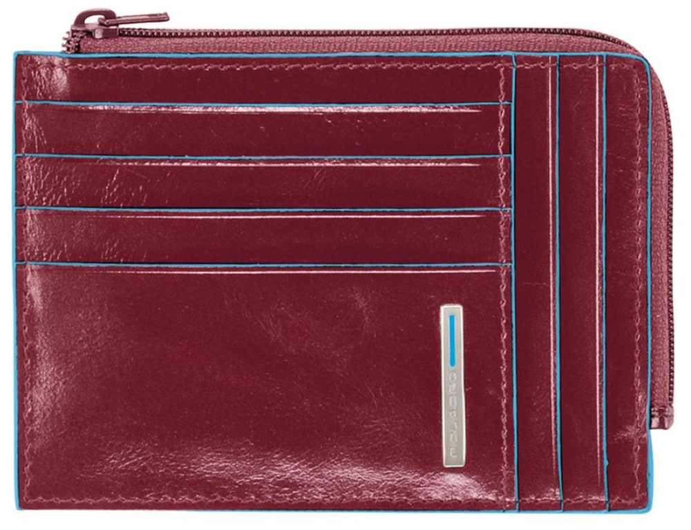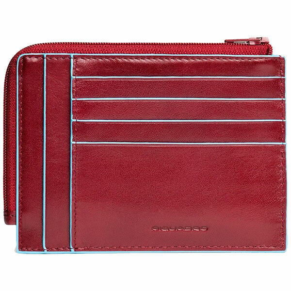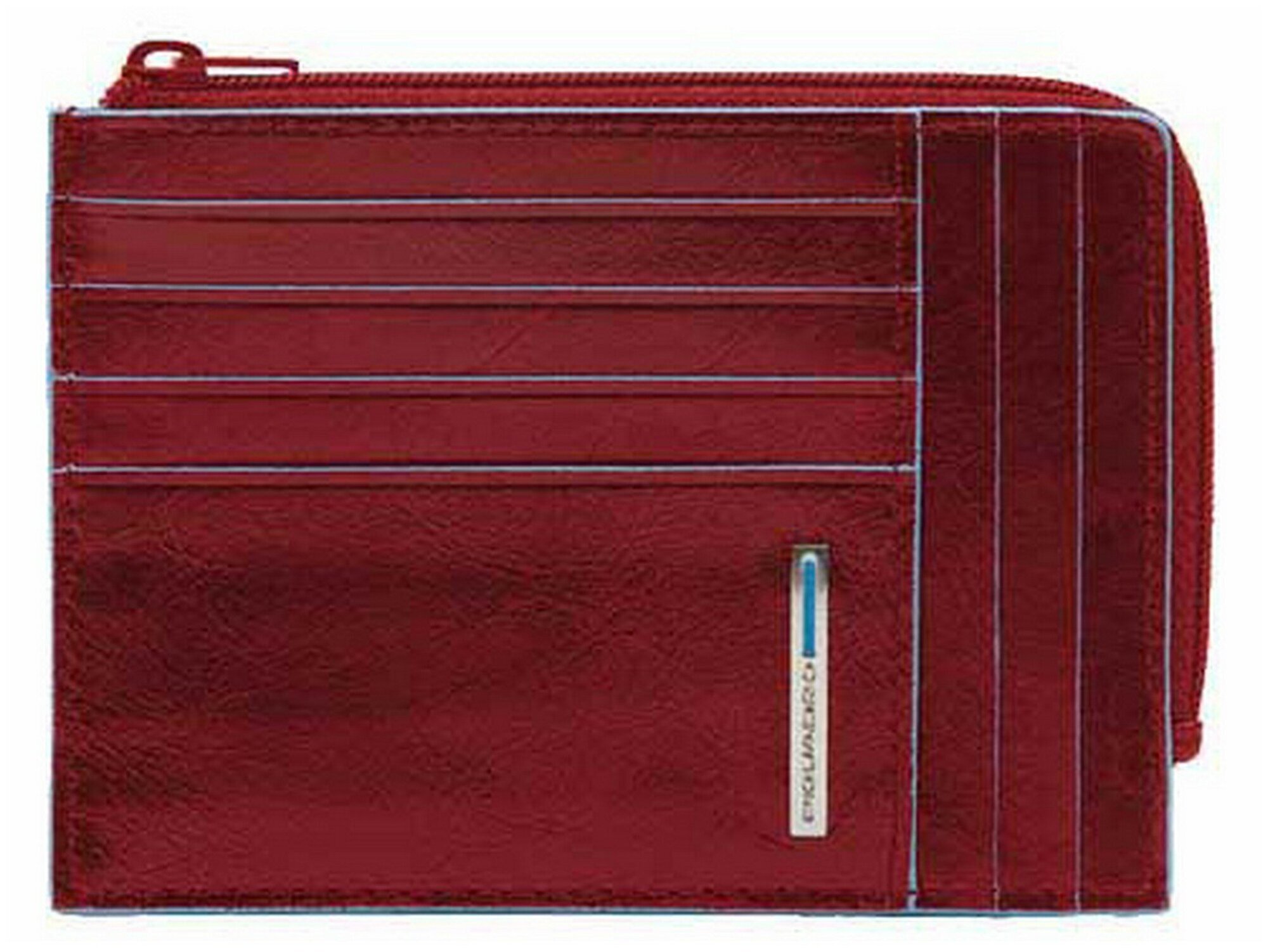 Чехол для кредитных карт с отделением для монет перегородкой для документов и от компании Piquadro, коллекция Blue Square. Натуральная телячья кожа. Оторочка по канту - голубым. Отделение для монет на молнии. Фирменная упаковка.