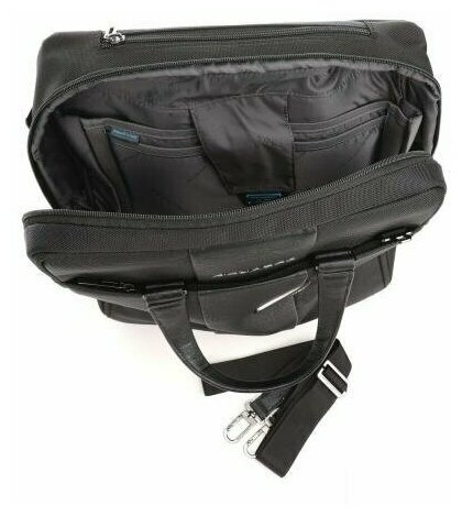 Дорожная сумка из новой коллекции Piquadro Brief. Изготовлена из 100% высокопрочного нейлона и вставок из мелкозернистой телячьей кожи с металлической фурнитурой. Имеет отделение для ноутбука, диагональ ноутбука до 15.6 ". Прекрасный вариант, как для деловых командировок, так и для небольших путешествий.