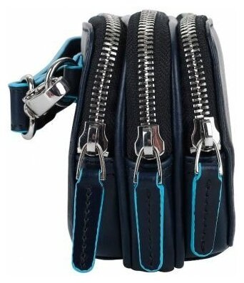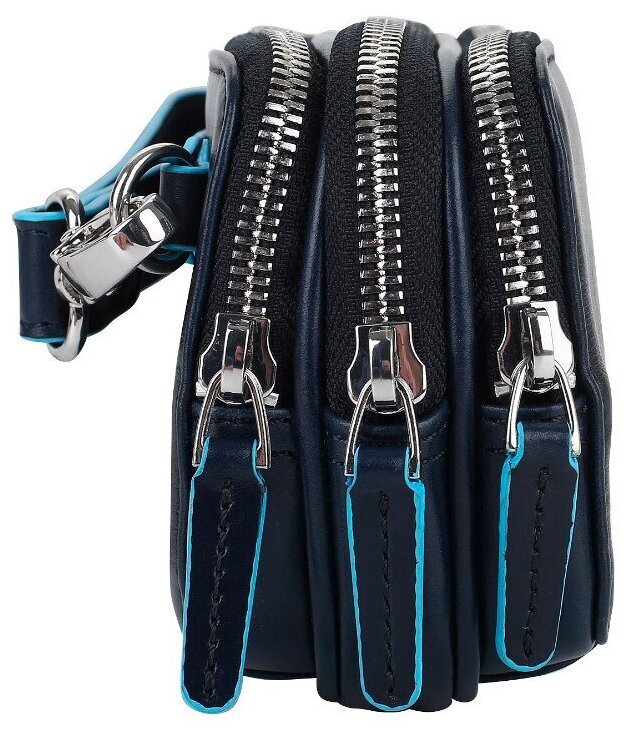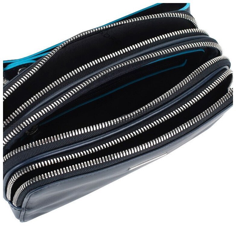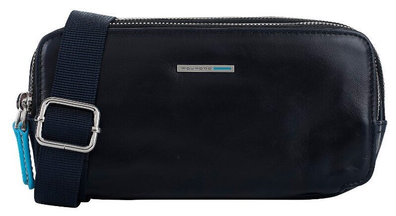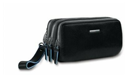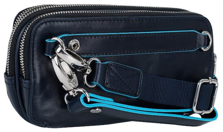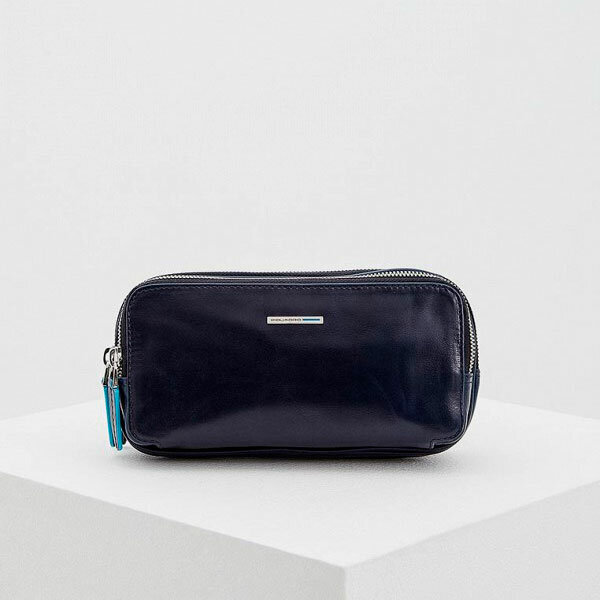 Кожаная барсетка из самой популярной коллекции Piquadro Blue Square. Изготовлена из гладкой телячьей, полуанилиновой кожи с фирменным голубым кантом. Барсетка имеет 3 отделения на молнии, в двух из них по 6 кармашков для банковских карт, в центральном отделении есть внутренний карман на молнии. В барсетку с легкостью помещается паспорт, водительское удостоверение, телефон и ключи. На задней стороне барсетки располагается крепление для ремешка на запястье и плечевого ремня. Выпускается в темно-синем, черном и коричневом цвете.