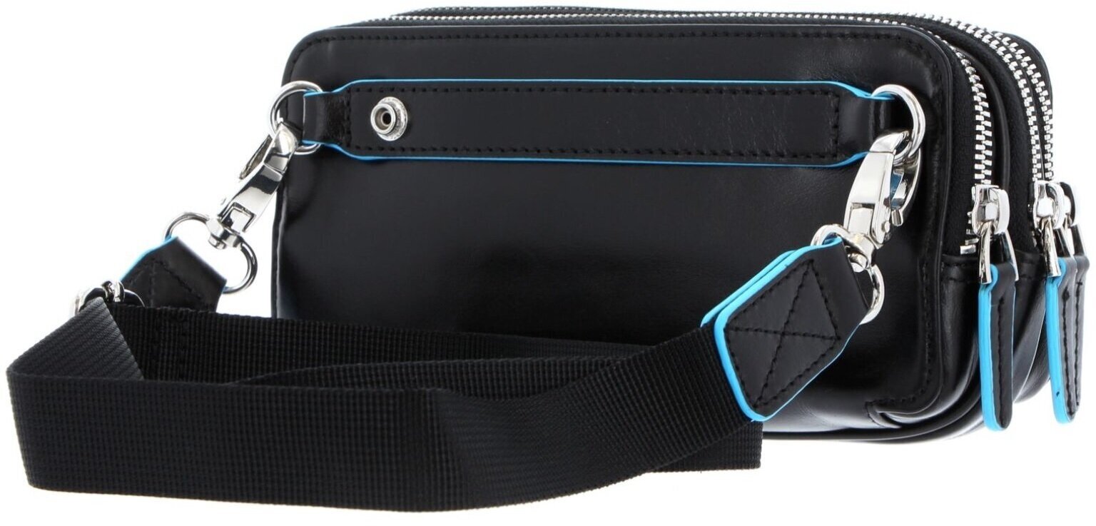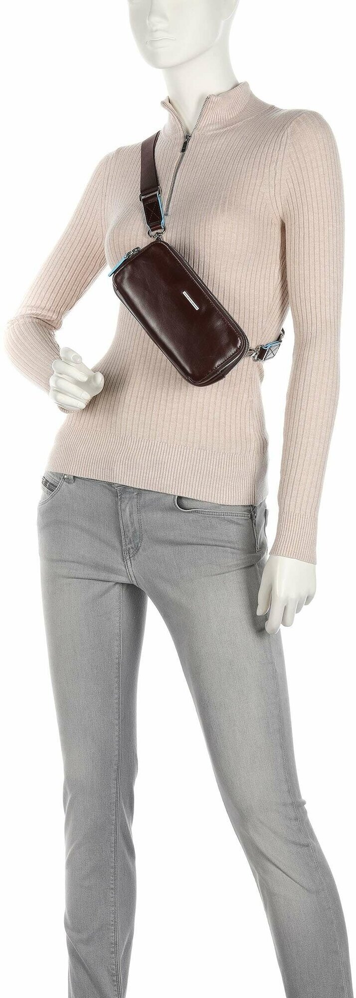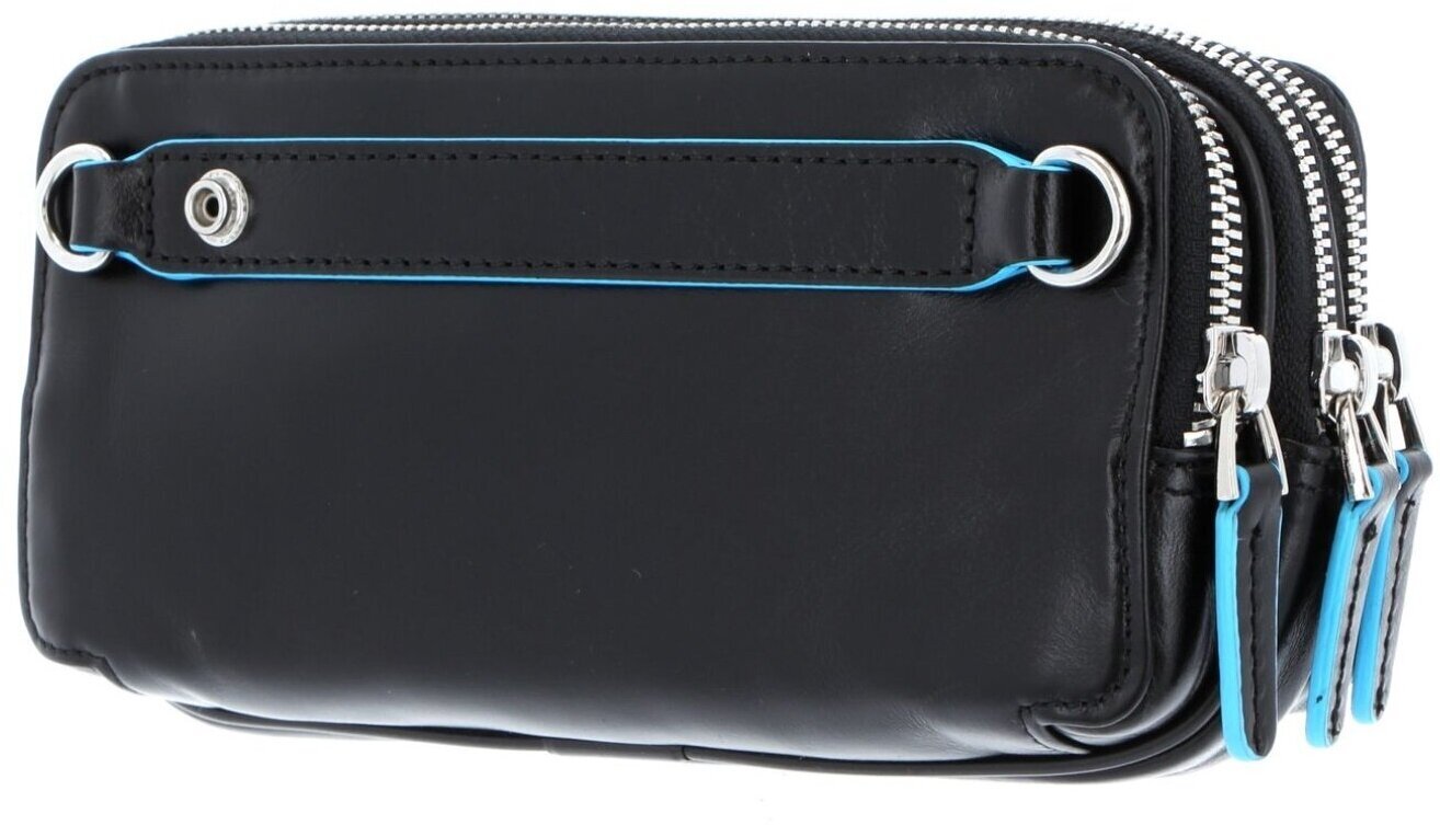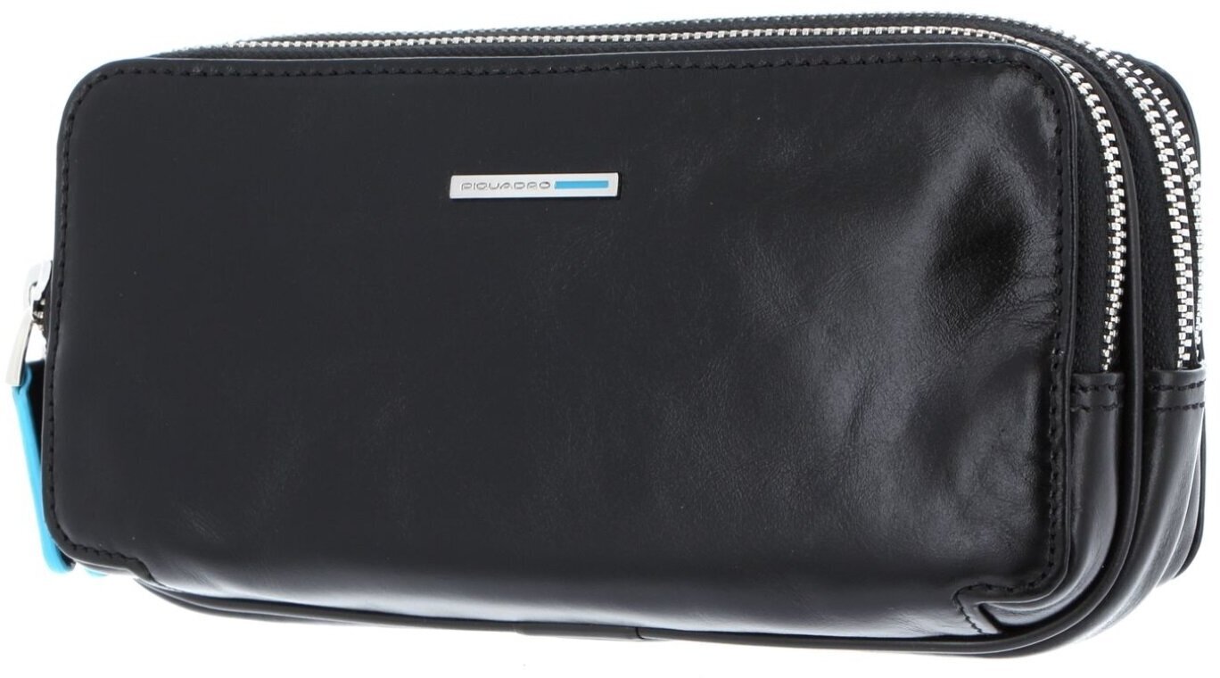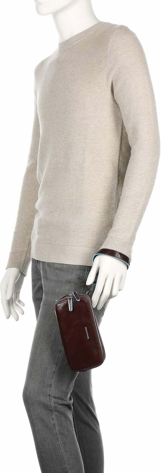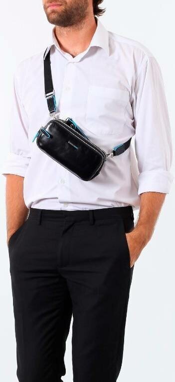 Кожаная барсетка из самой популярной коллекции Piquadro Blue Square. Изготовлена из гладкой телячьей, полуанилиновой кожи с фирменным голубым кантом. Барсетка имеет 3 отделения на молнии, в двух из них по 6 кармашков для банковских карт, в центральном отделении есть внутренний карман на молнии. В барсетку с легкостью помещается паспорт, водительское удостоверение, телефон и ключи. На задней стороне барсетки располагается крепление для ремешка на запястье и плечевого ремня. Выпускается в темно-синем, черном и коричневом цвете.