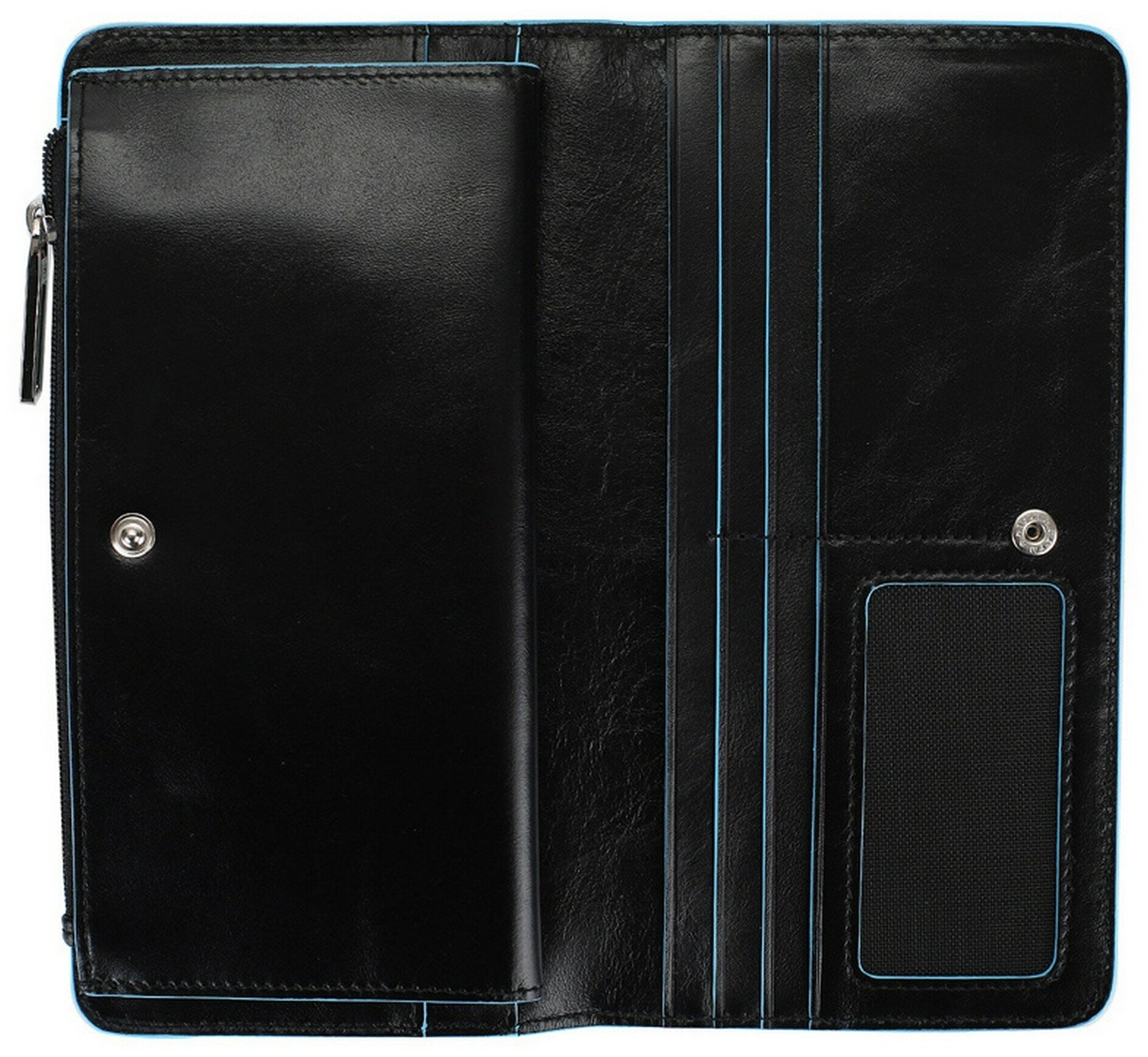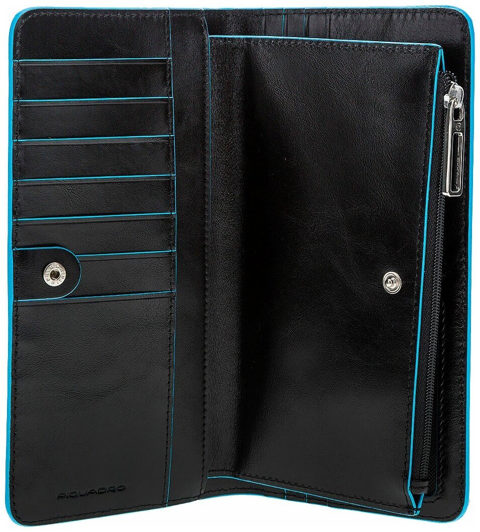 Женское портмоне Piquadro из коллекции Blu Square. Портмоне выполнено из гладкой телячьей кожи с голубым кантом. Имеет кармашки для 12 кредитных карт и отделение для мелочи и купюр. Станет прекрасным дополнением к сумке, портфелю или рюкзаку из аналогичной коллекции.