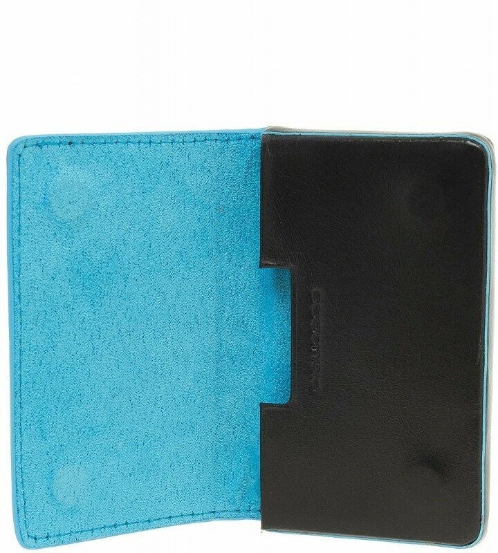 Чехол для визитных карт от компании Piquadro, коллекция Blue Square. Натуральная телячья кожа. Предметы из коллекции Blue Square Piquadro уже давно стали такой же классикой, как iPad в мире планшетов. Поэтому они сочетаются идеально. Здесь нет ничего лишнего, всё по делу: гладкая телячья кожа, обтекаемая форма, фирменная голубая окантовка и возможность трансформировать чехол.