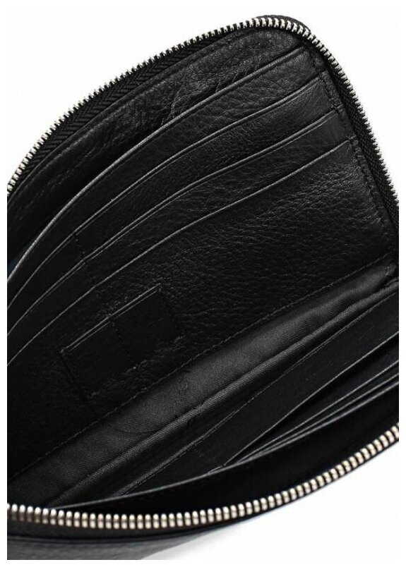 Портмоне горизонтальное с ремешком на запястье из базовой коллекции MODUS. Имеет одно отделение, с двумя карманами под купюры и множеством кармашков для кредитных карт. На задней стенке карман на молнии. Прекрасный вариант для автодокументов, кредитных карт и наличных. Клатч сделан из прочной износостойкой телячьей текстурной кожи.
