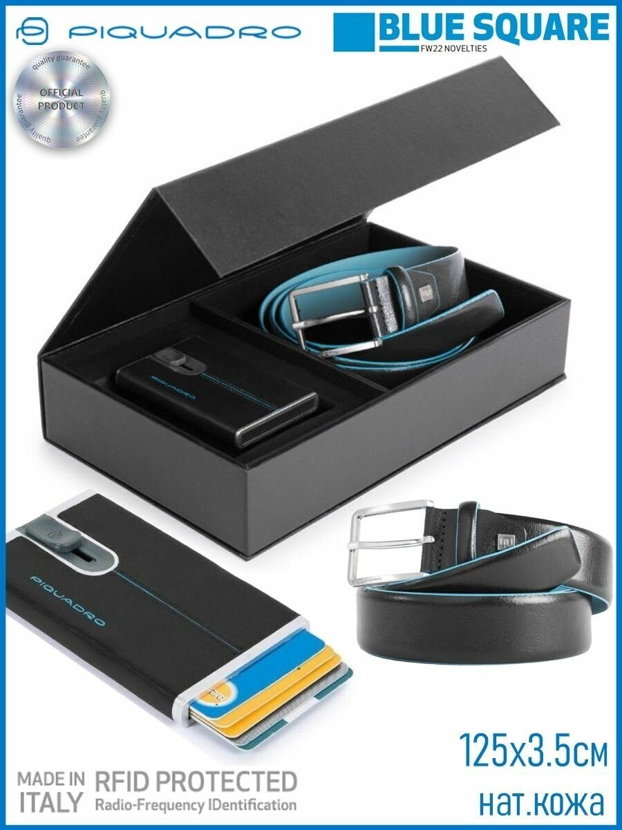 Набор подарочный Piquadro Blue Square CUBOX15B2R/N ремень/чехол для кредитных карт