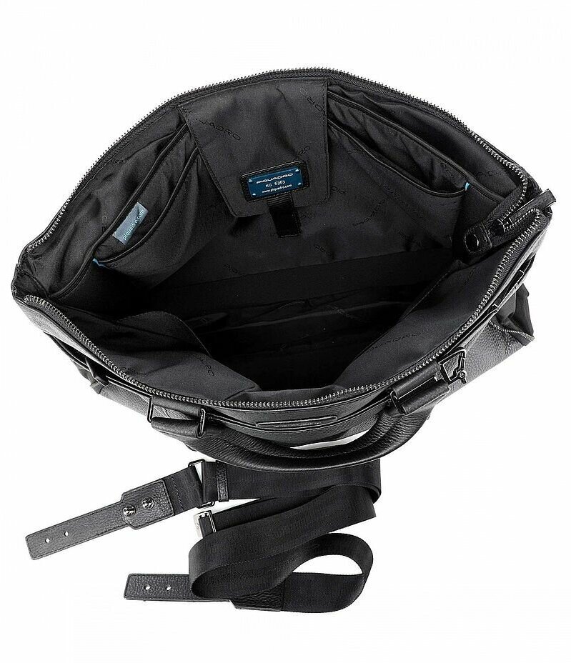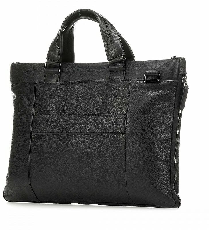 Кожаная деловая сумка из коллекции Piquadro Modus. Изготовлена из мягкой зернистой телячьей кожи высочайшего качества. Сумка имеет одно отделение с отсеком для 15,6 дюймового ноутбука и планшета, а также карманы для телефона и ручек. Молния по контуру позволяет увеличить ширину сумки в случае необходимости. Плечевой ремень в комплекте.