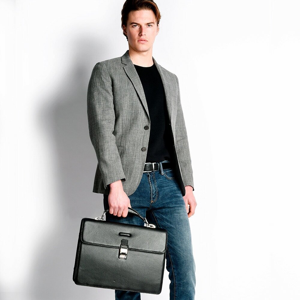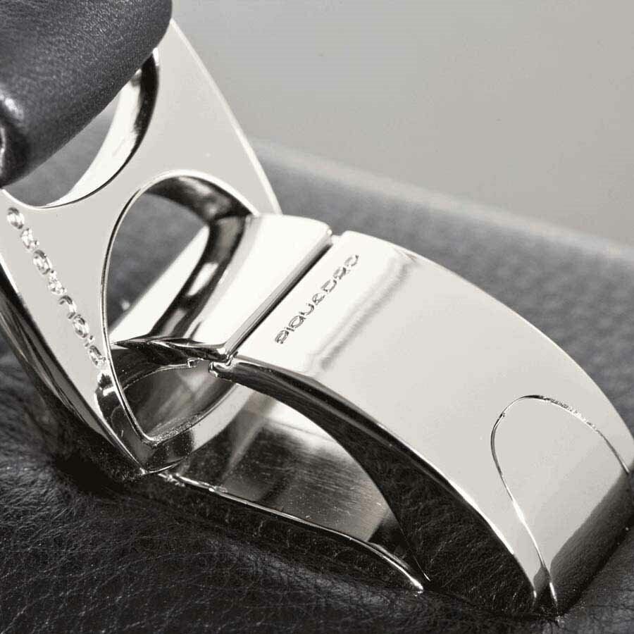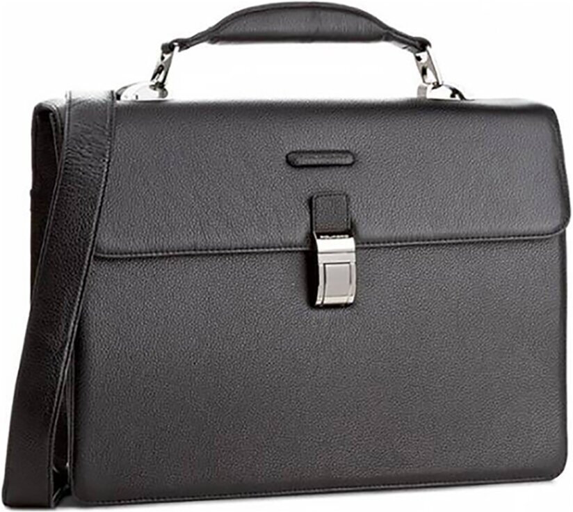 Жесткий портфель с двумя перегородками для ноутбука и iPad /iPad Air от компании Piquadro, коллекция Modus. Натуральная телячья кожа черного цвета. два основных отделения, отделение для ноутбука до 15" с фиксатором, отделение для планшета, съемное отделение для кредитных карт, съемное отделение для ручек, съемный карман для мелочей. ъемный регулируемый плечевой ремень