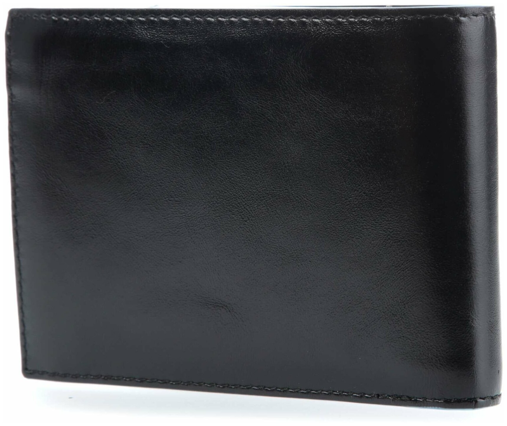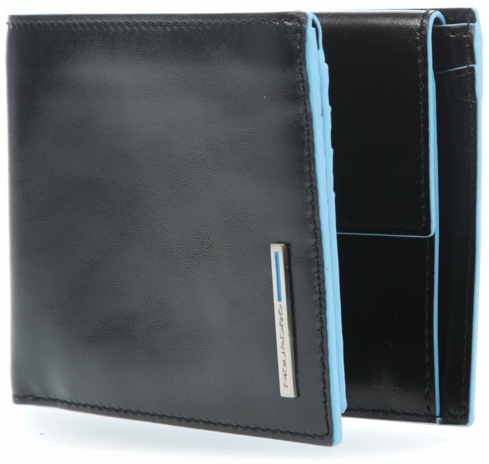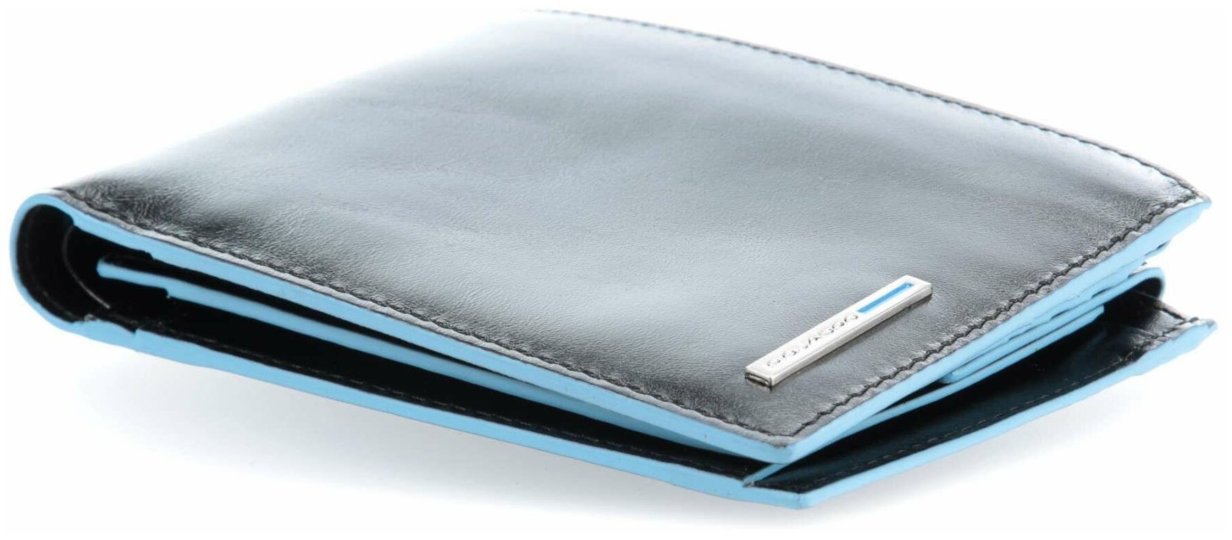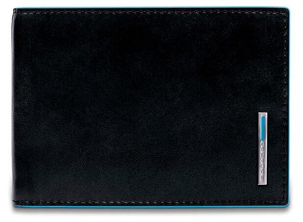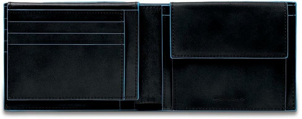 Портмоне Piquadro Blue Square аккуратное и стильное мужское складное портмоне из гладкой натуральной кожи черного цвета отличается компактностью, поэтому без труда поместится в небольшой сумке или кармане. Аксессуар располагает отделом для банкнот, откидным карманом-окном, закрытым кармашком для мелочи и набором открытых кармашков для визиток или пластиковых карточек.
