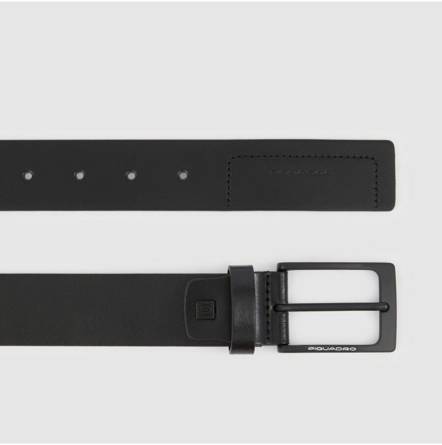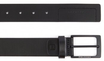 Мужской кожаный ремень от итальянской компании Piquadro. Линия Finn выполнена из кожи теленка, с легкой и неравномерной текстурой, приятной на ощупь. Металлические аксессуары, разработанные Piquadro, имеют матовую черную отделку, а характерный крючок спереди для крепления подвесок или других аксессуаров, оснащен специальной скрытой магнитной системой.