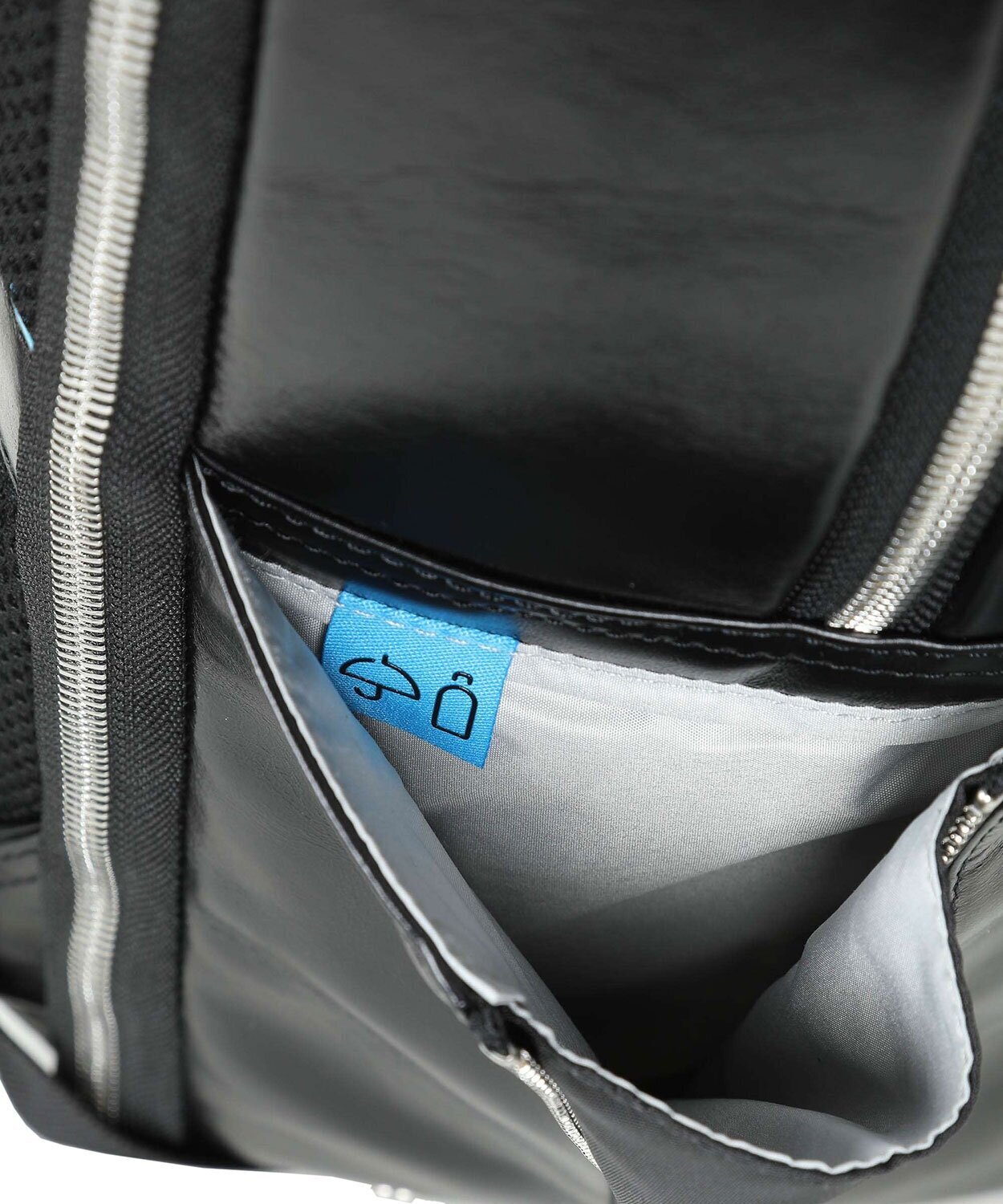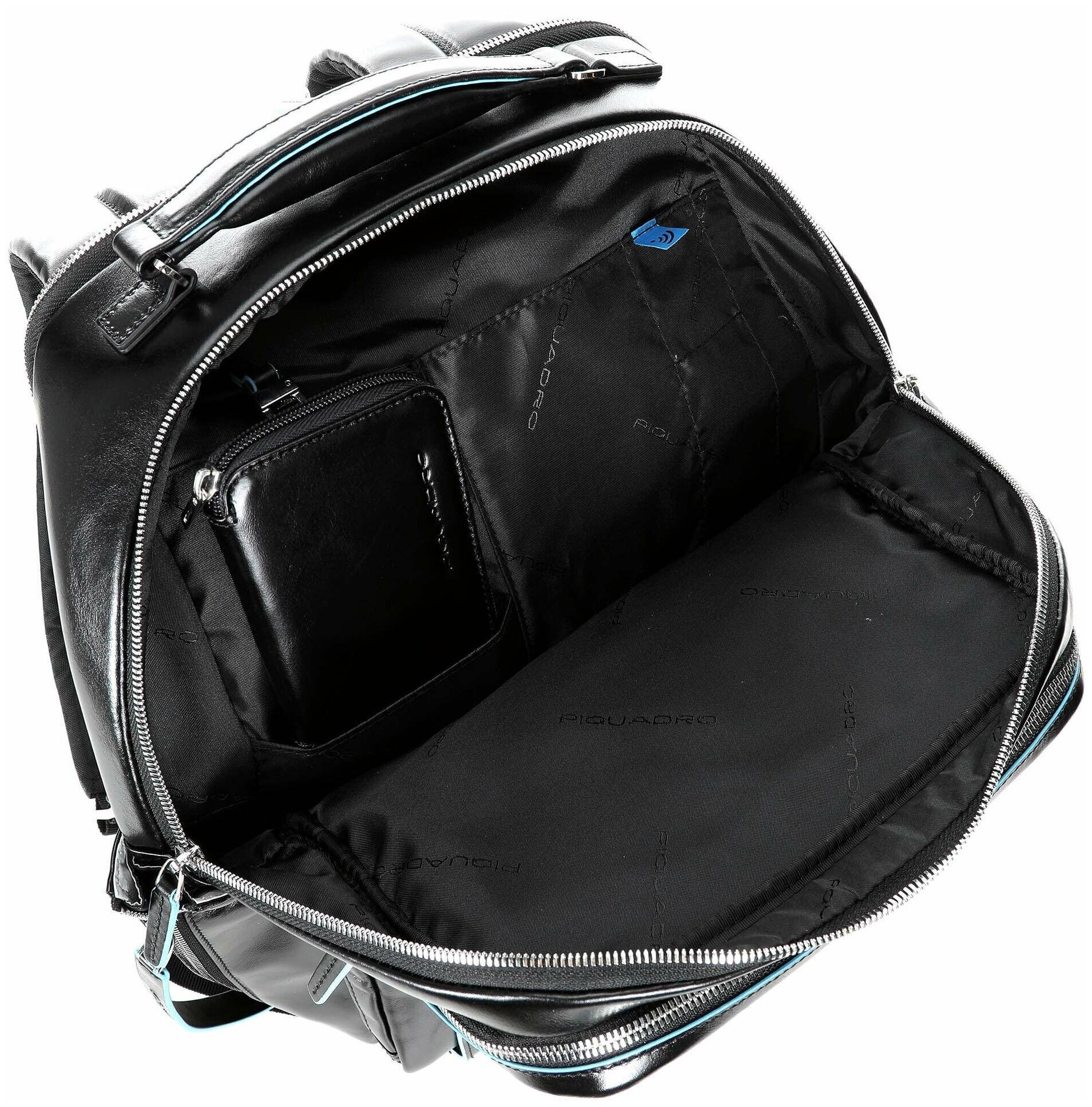 Стильный, кожаный бизнес-рюкзак из флагманской коллекции Piquadro Blue Square. Изготовлен из мягкой телячьей кожи с восковой пропиткой, фирменная окантовка бирюзовым кантом. Рюкзак имеет два больших отделения, в одном из которых находится отсек для 14 дюймового ноутбука и планшета, возможность открытия отделения на 180 градусов, с легкостью позволит разместить необходимые Вам вещи. На боковой части рюкзака расположен карман для зонта / бутылки. На передней части два кармана, с органайзером для письменных принадлежностей и отсеком для телефона. Также спереди расположен стильный и съемный брелок для ключей. Великолепный и функциональный рюкзак, как для командировок, так и на каждый день.
