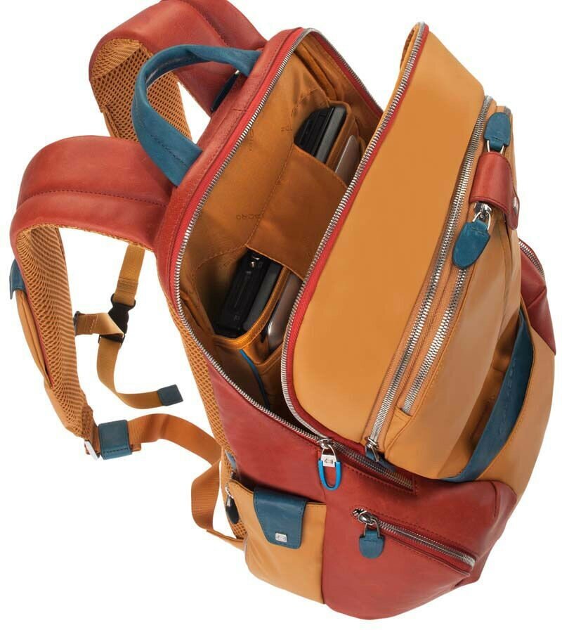 Рюкзак для ноутбука с отделением для iPad/iPad Air2, водонепроницаемый, с карманом для зонтика от компании Piquadro, коллекция Coleos. Натуральная телячья кожа.