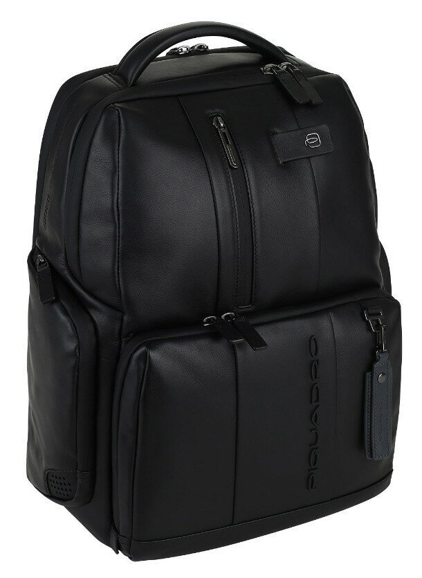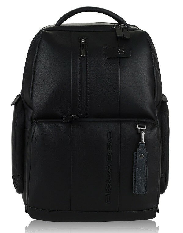 Кожаный бизнес-рюкзак из коллекции Piquadro Urban. Рюкзак изготовлен из мягкой телячьей кожи высочайшего качества с использованием матовой черненой фурнитуры. Это немного упрощенная флагманская модель рюкзака CA4550UB00BM, без "фишек", но все также с высокой функциональностью и превосходным дизайном. В рюкзаке предусмотрено 2 отделения, одно из которых имеет отсек для 15.6 дюймового ноутбука и планшета, сбоку расположен карман для зонта, спереди карман для телефона и ручек, на лямках предусмотрен держатель для очков и карман для пластиковой карты. На задней стенке рюкзака находится карман на молнии с RFID защитой, а также крепление на ручку чемодана.