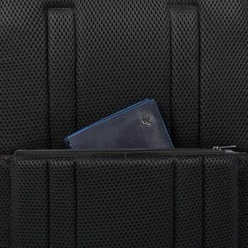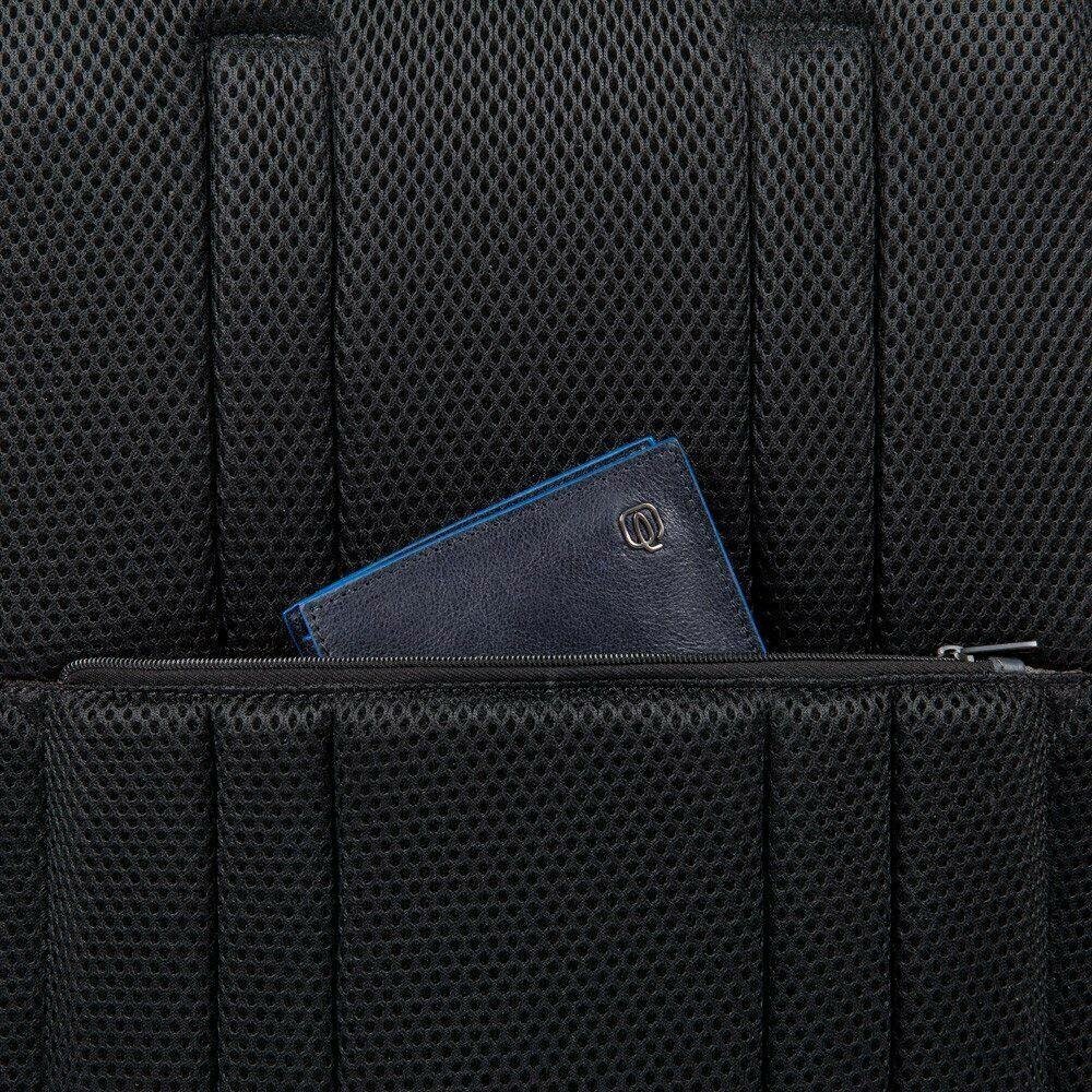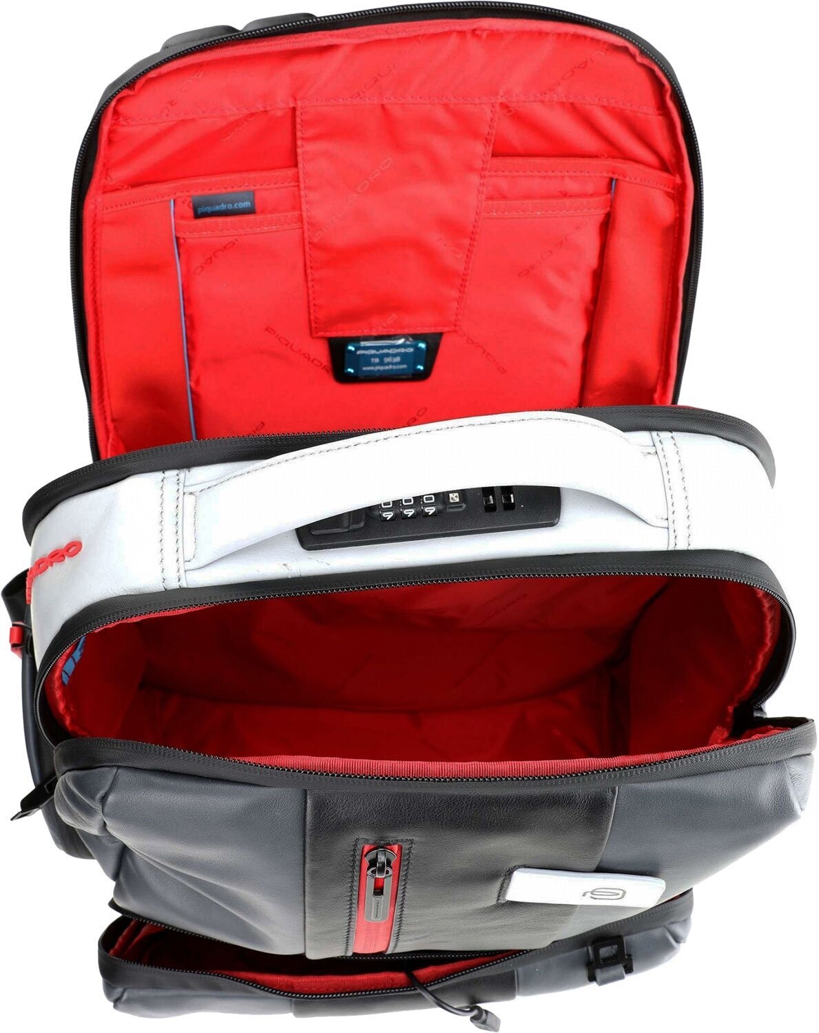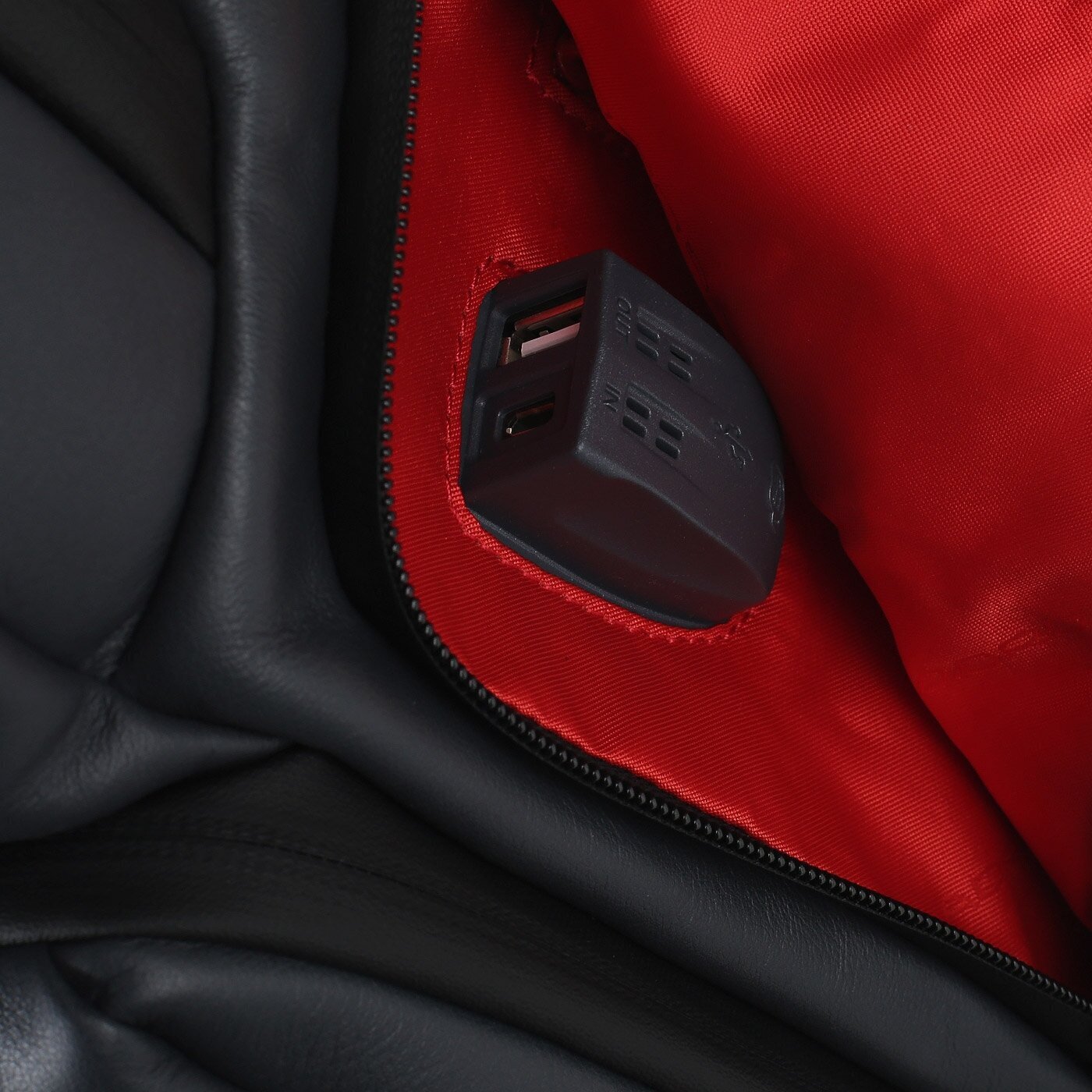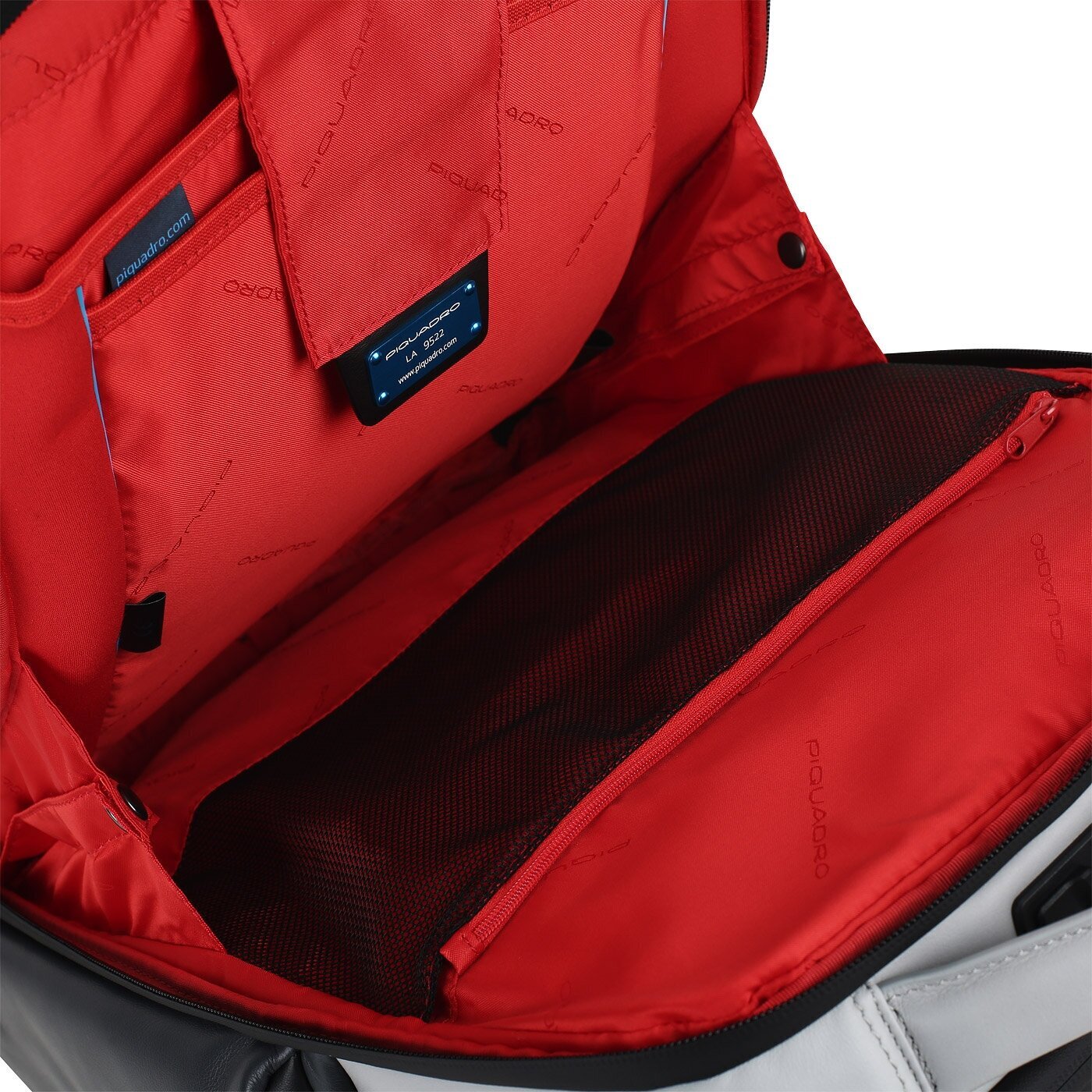 Датчик CONNEQU отсутствует! Кожаный бизнес-рюкзак из новой коллекции Piquadro Urban. Рюкзак изготовлен из мягкой телячьей кожи с использованием черненой металлической фурнитуры. Это флагманская модель рюкзака, здесь реализованы такие "фишки", как: кодовый замок на одном из отделений, RFID защита, позволяющая избежать снятия денежных средств бесконтактным способом, "антиворовской" шнур, с помощью которого можно пристегнуть рюкзак и не беспокоится, что его своруют, USB выходы для зарядки Ваших гаджетов, а также крепеж на чемодан, крючок для очков и брелок с контактной информацией. Рюкзак имеет два отделения в одном из которых расположен отсек для 15,6 дюймового ноутбука и планшета, а боковые карманы предназначены для небольшой бутылки и зонтика. Идеальный вариант, как для работы на каждый день, так и для поездок.