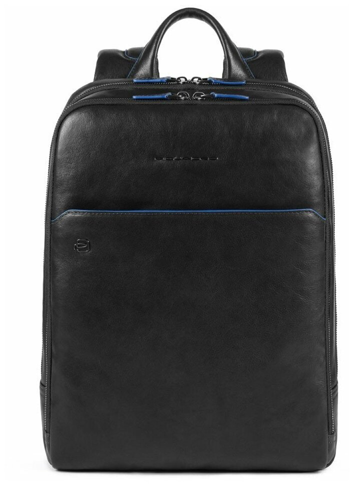 Кожаный бизнес-рюкзак с двумя отделениями из коллекции Piquadro B2S. Рюкзак изготовлен из телячьей текстурной матовой кожи натурального дубления. Имеет отсеки для 14 дюймового ноутбука и планшета, карманы для письменных принадлежностей и телефона, внутренний карман на молнии. На задней части рюкзака расположен скрытый карман для портмоне с RFID защитой и планка для крепления на дорожную сумку.