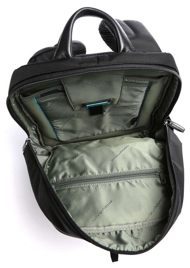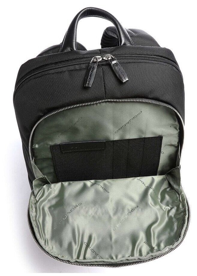 Рюкзак на молнии. Изготовлен из высокопрочной ткани с кожаными вставками. Внутри: 2 основных отделения, держатели для пишущих инструментов, карман для мобильного телефона и дополнительные отделения. Возможность разместить планшет до 10,5 дюймов. Снаружи на передней стенке отделение на молнии. Оснащен системой крепления к ручке чемодана, которая выручит вас в путешествии.