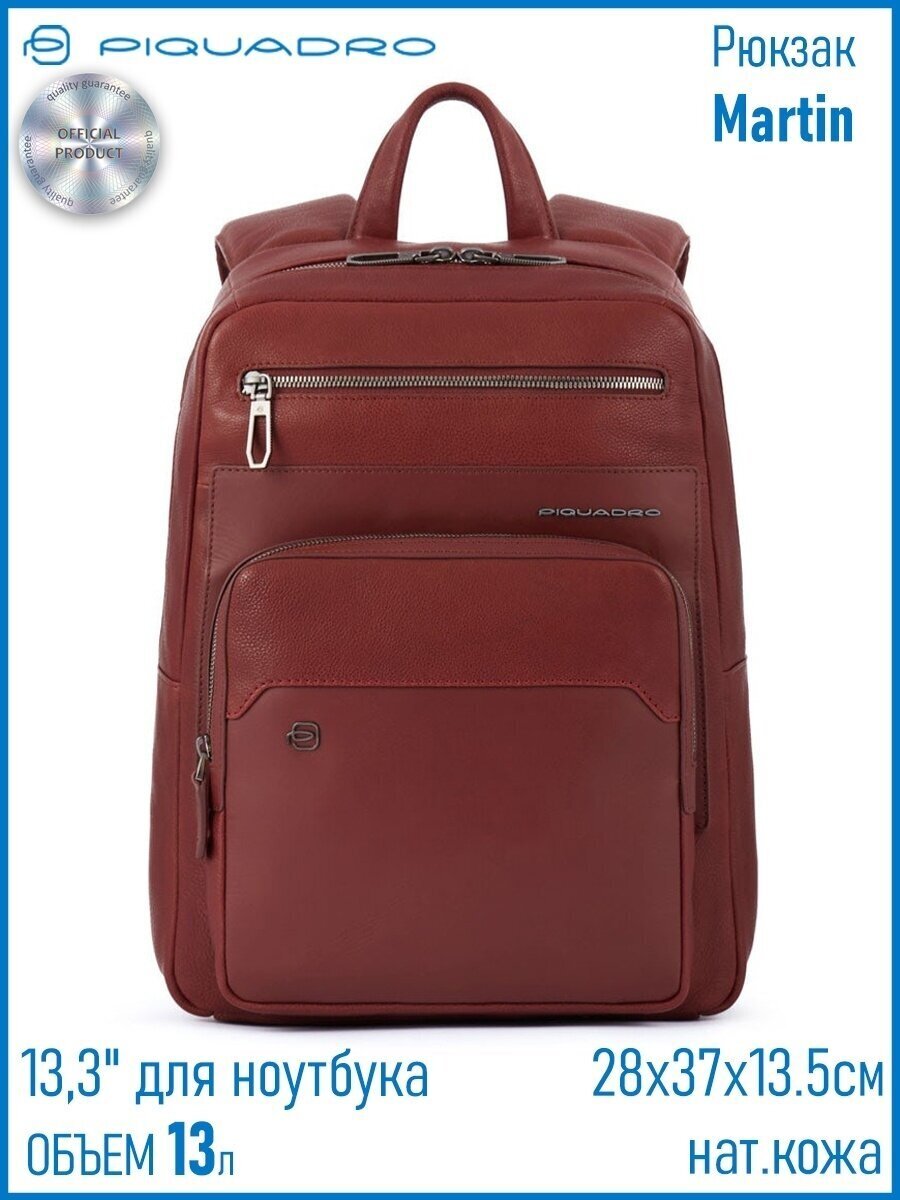 Кожаный городской рюкзак Piquadro из коллекции Martin. В рюкзаке предусмотрено одно отделение с отсеком для 13.3 дюймового ноутбука и планшета, телефона и письменных принадлежностей.