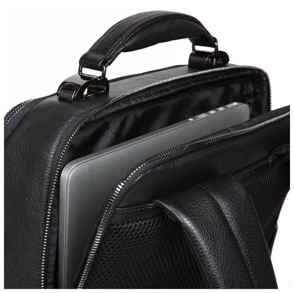 Солидный мужской кожаный рюкзак из коллекции Piquadro Modus Special. Изготовлен из структурной телячьей кожи с превосходной металлической фурнитурой. Рюкзак имеет два отделения с отсеком для 15,6 дюймового ноутбука и планшета, карманами для телефона и ручек. На передней части расположен большой карман на молнии, на задней части крепление на ручку дорожного чемодана.