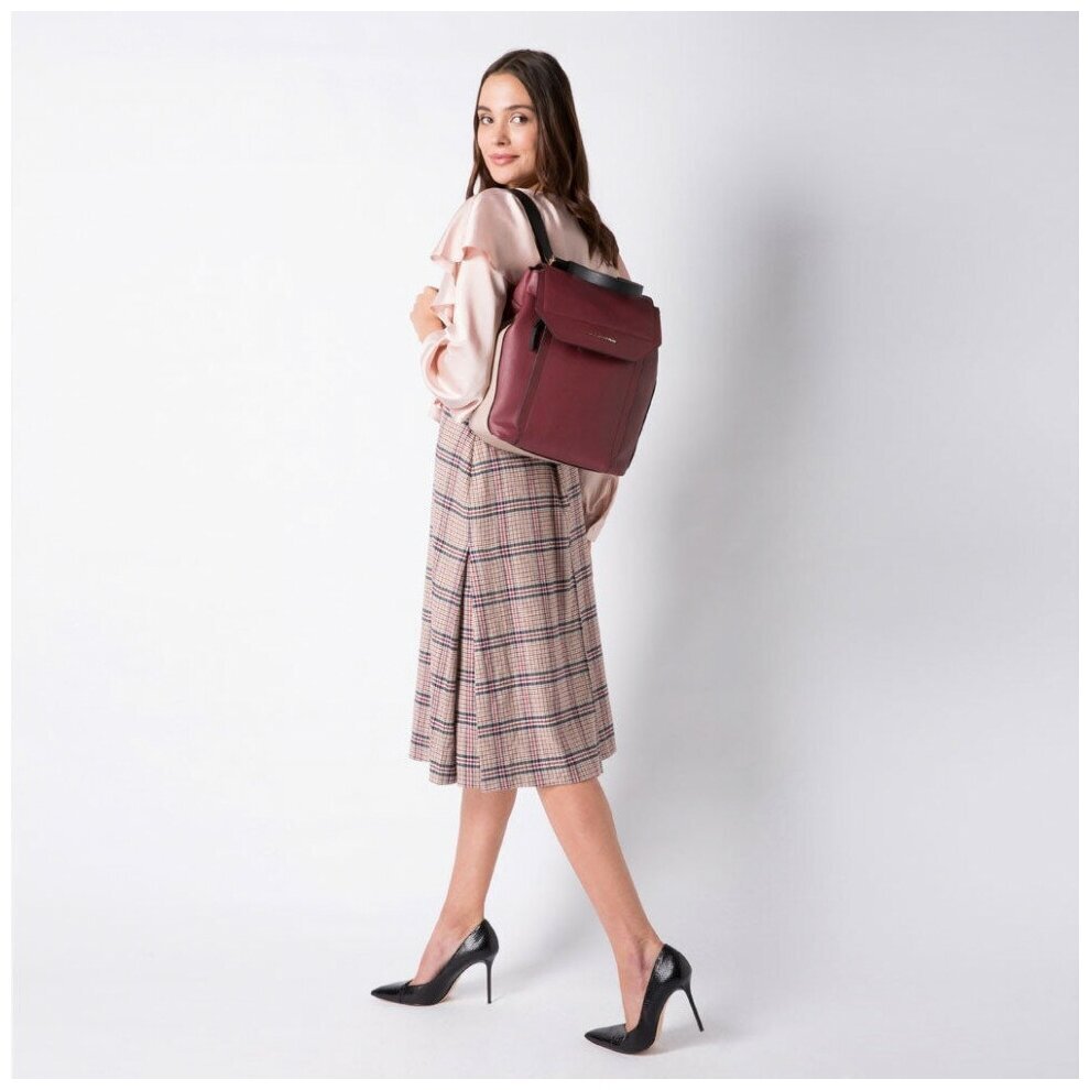 Компактный кожаный женский рюкзак из коллекции Piquadro Circle. Изготовлен из высококачественной зернистой телячьей кожи с использованием надежной и стильной металлической фурнитуры золотистого цвета. Рюкзак имеет одно отделение с отсеком для планшета, кармашки для телефона и письменных принадлежностей. На задней части рюкзака расположена планка для крепления на ручку чемодана