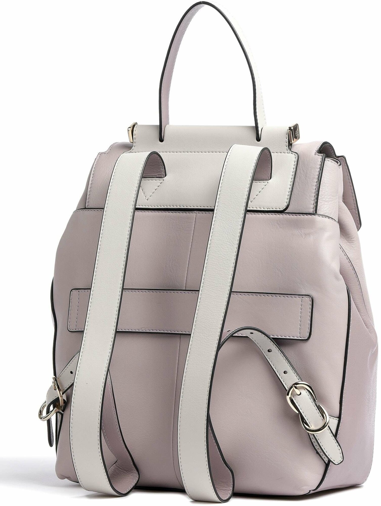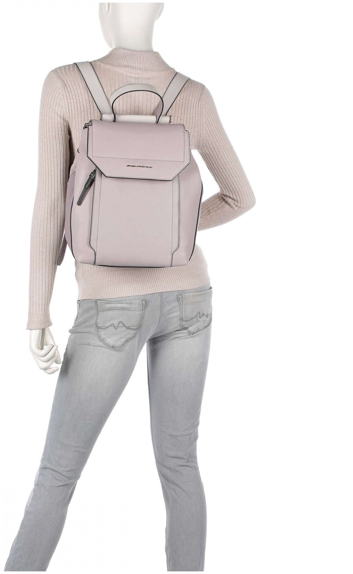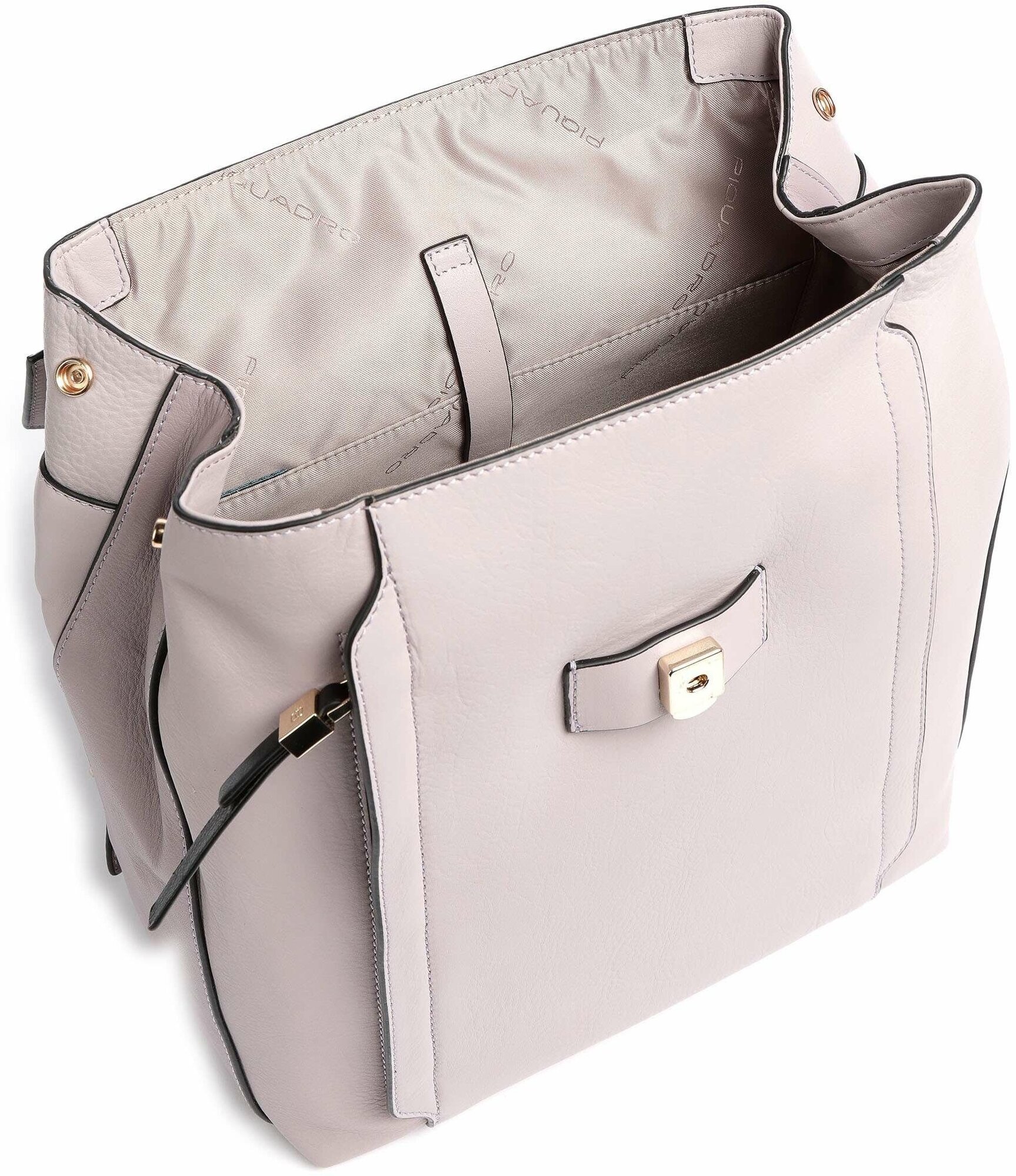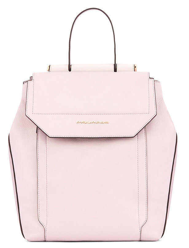 Компактный кожаный женский рюкзак из коллекции Piquadro Circle. Изготовлен из высококачественной зернистой телячьей кожи с использованием надежной и стильной металлической фурнитуры золотистого цвета. Рюкзак имеет одно отделение с отсеком для планшета, кармашки для телефона и письменных принадлежностей. На задней части рюкзака расположена планка для крепления на ручку чемодана