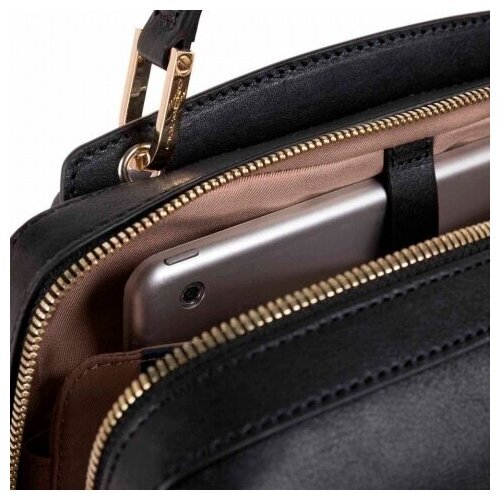 Изготовлен из мягкой премиальной телячьей кожи с использованием металлической отделки светло-золотистого цвета. Рюкзак имеет одно отделение с отсеком для 13,3 дюймового ноутбука, кармашками для телефона и письменных принадлежностей, а также планку на задней стенке для крепления на ручку дорожного чемодана. Верхняя часть имеет кнопки, позволяющие изменять форму рюкзака. Элегантная, женственная коллекция Dafne выполнена из бархатистой на ощупь натуральной кожи с выраженной зернистостью. Боковые элементы сумок изготовлены из замши, а ручки — из высококачественной лицевой телячьей кожи. Металлическая фурнитура цвета бледное золото придает изделиям этой коллекции узнаваемый стиль и шик.