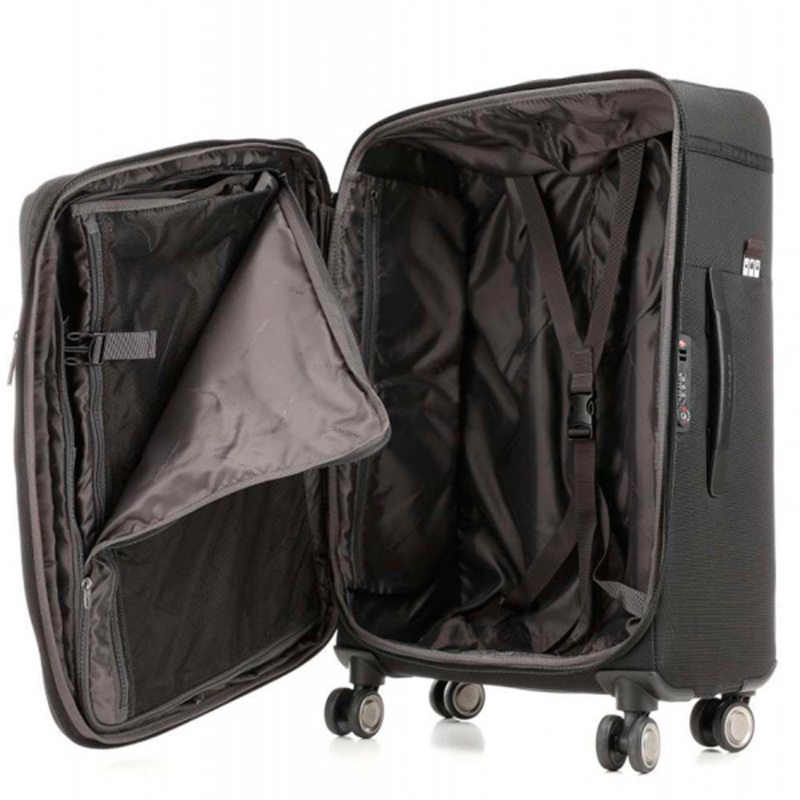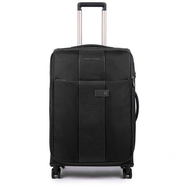 Чемодан из нейлона и кожи на четырех колесах из коллекции Piquadro Brief, средний по размеру. Чемодан имеет одно вместительное отделение с натяжными ремнями, карманом на молнии и отсеком для костюма, обладает несколькими ручками для удобства транспортировки. По периметру предусмотрена молния для увеличения внутреннего объема чемодана. Вес чемодана 4356 гр. Объем: 73 литра.
