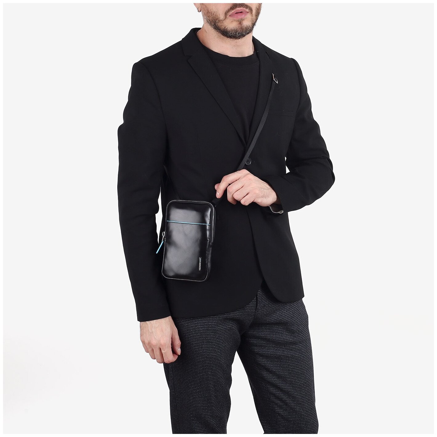 Вертикальная кожаная мужская сумка от компании Piquadro станет прекрасным повседневным аксессуаром, в неё поместятся телефон, ключи, бумажник, документы и другие необходимые мелочи.
