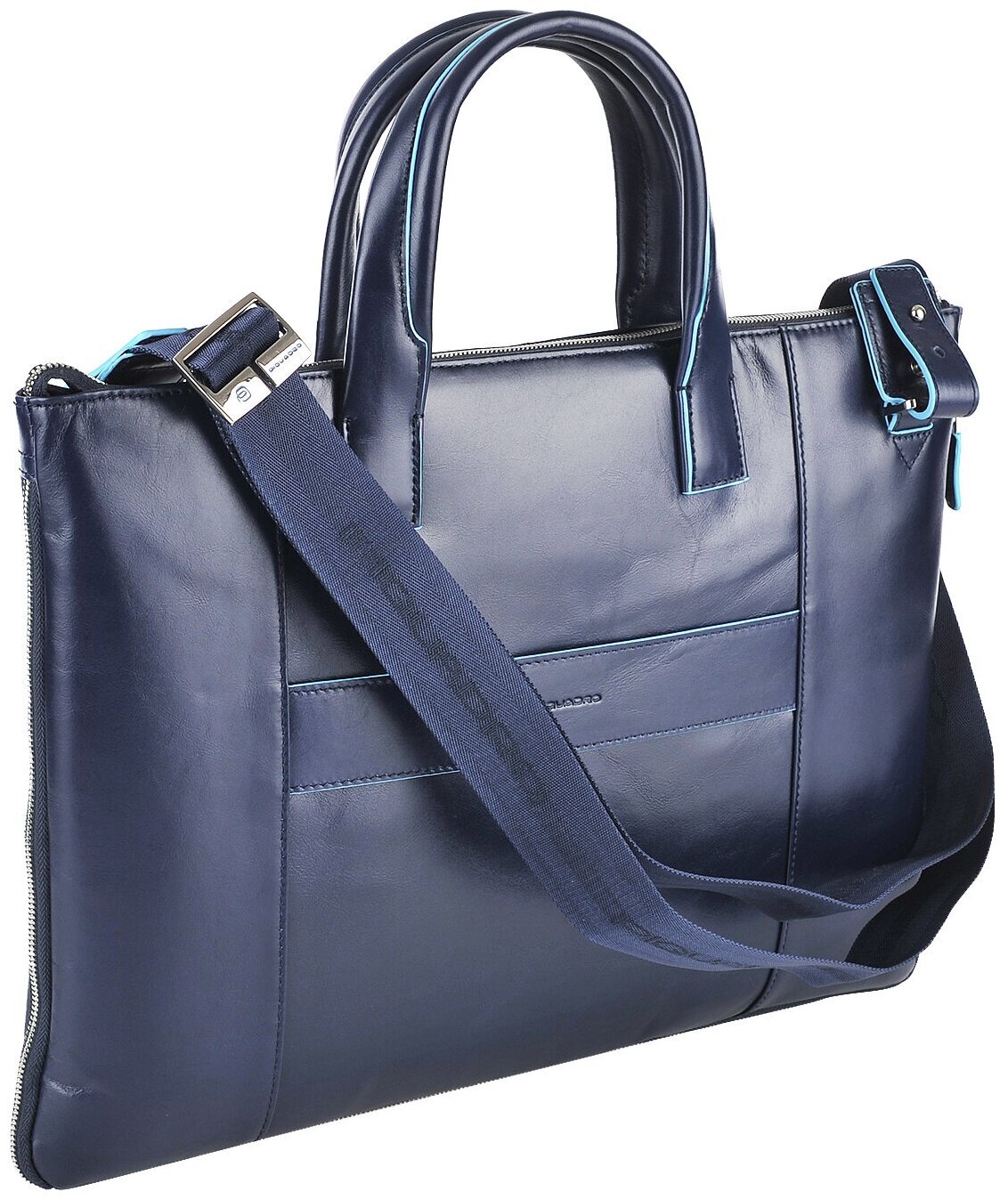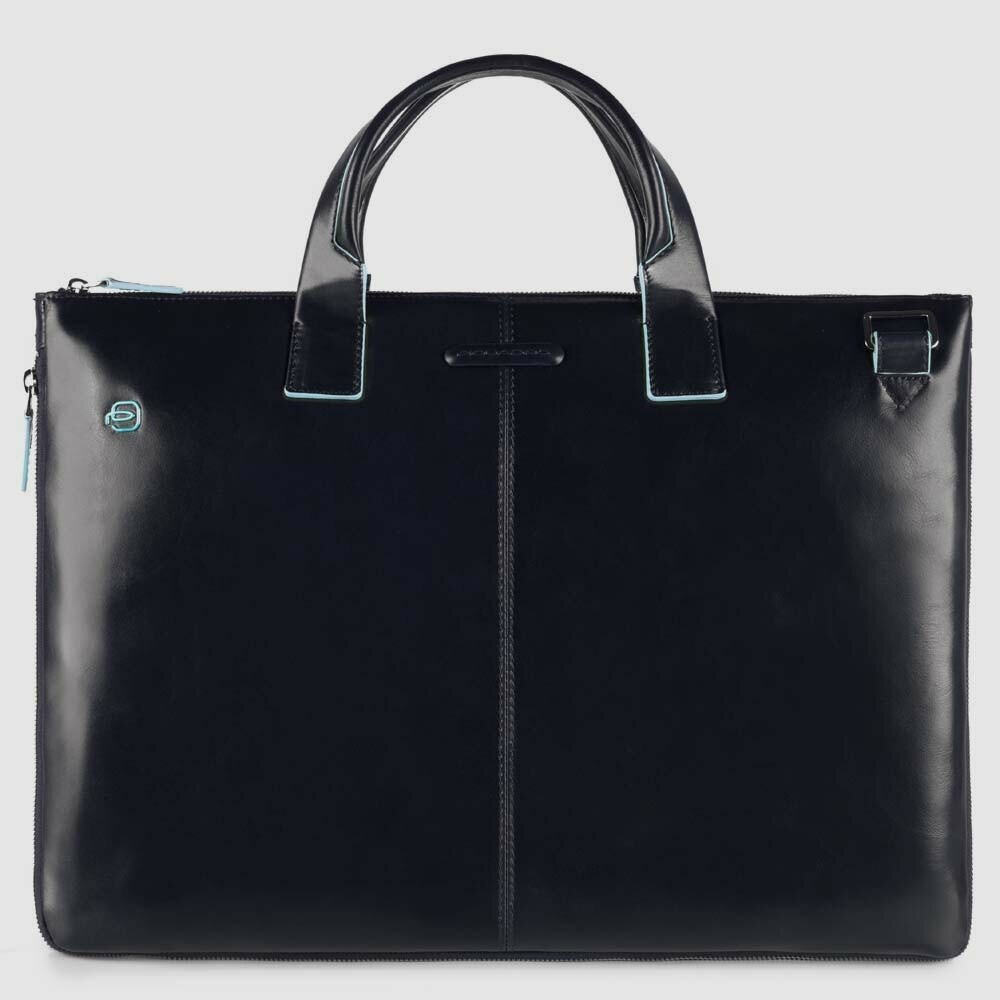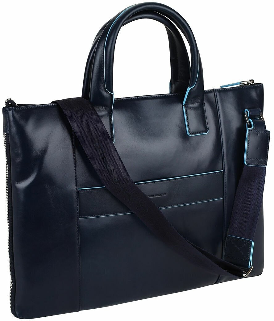 Кожаная мужская сумка для ноутбука со съемным плечевым ремнем из новой коллекции Piquadro Black Square. Сумка имеет одно отделение, отсеки для ноутбука и планшета, кармашки для письменных принадлежностей и телефона. Молния по периметру позволяет увеличивать ширину сумки до 10 см. Выполнена из мелкозернистой кожи.