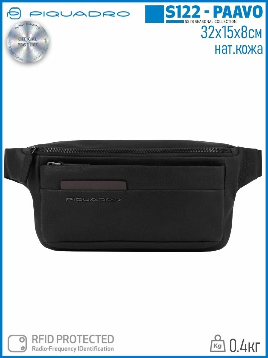 Сумка на пояс от итальянской компании Piquadro, изготовлена из натуральной кожи