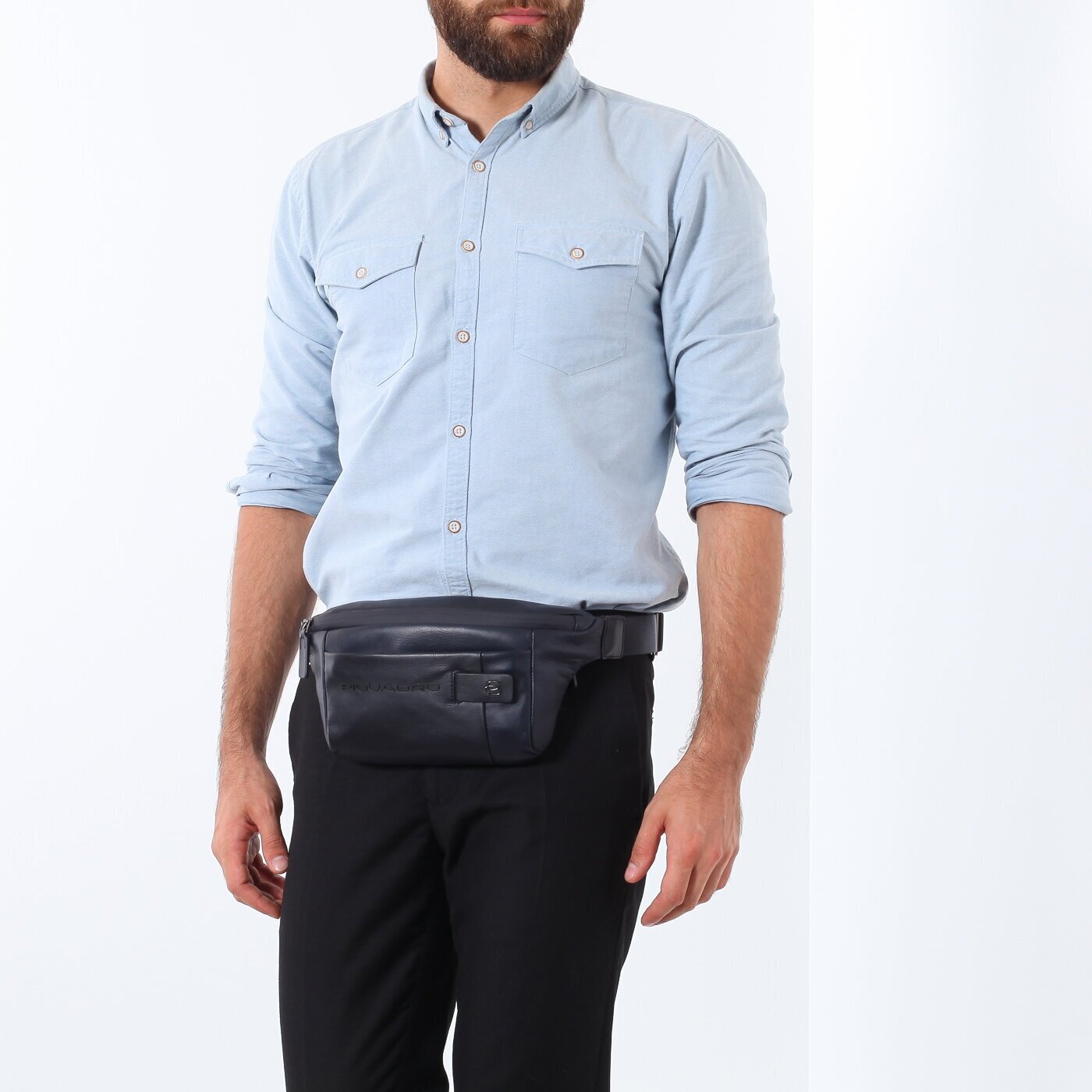 Кожаная поясная сумка из новой коллекции Piquadro Urban. Сумка изготовлена из гладкой телячьей кожи с использованием черненой матовой фурнитуры. Имеет одно отделение и карман на молнии. Последнее время сумки на пояс набирают все большую популярность, их используют и на каждый день и для путешествий, где хранят паспорт, телефон и прочие важные вещи.