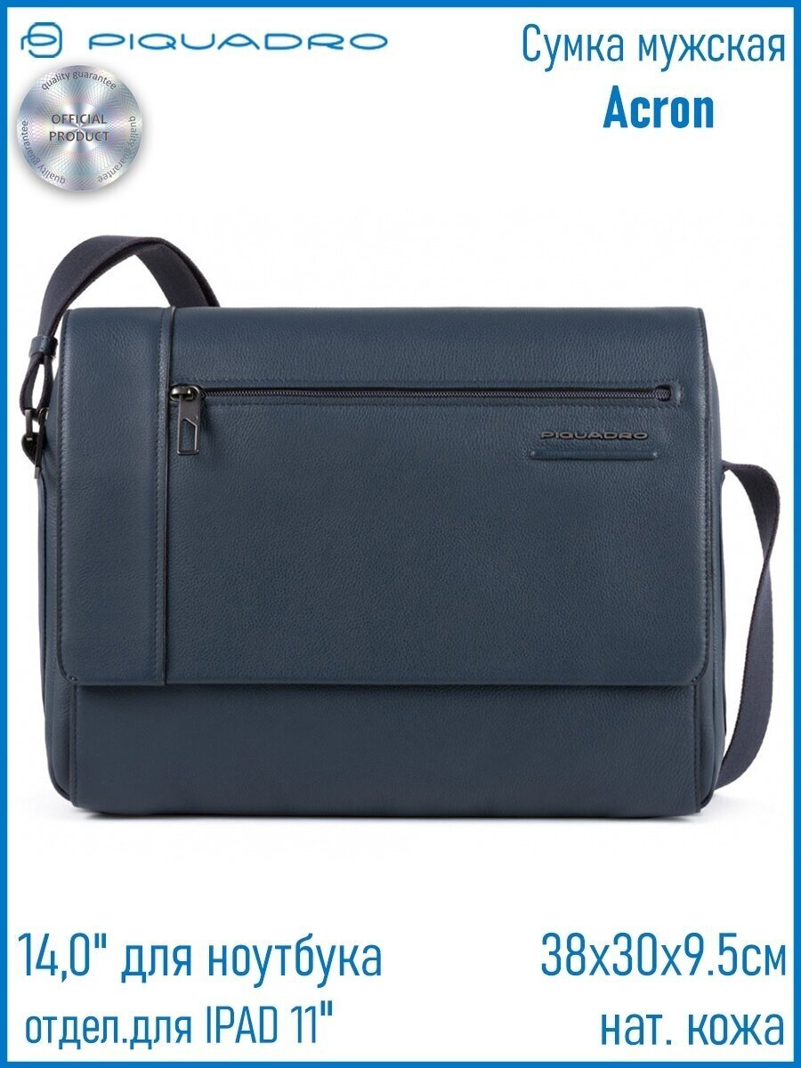 Кожаная мужская сумка-почтальон через плечо с возможностью персонализации, из коллекции Piquadro Akron, с одним отделением, карманом для 14 дюймового ноутбука и планшета, большим карманом на молнии.