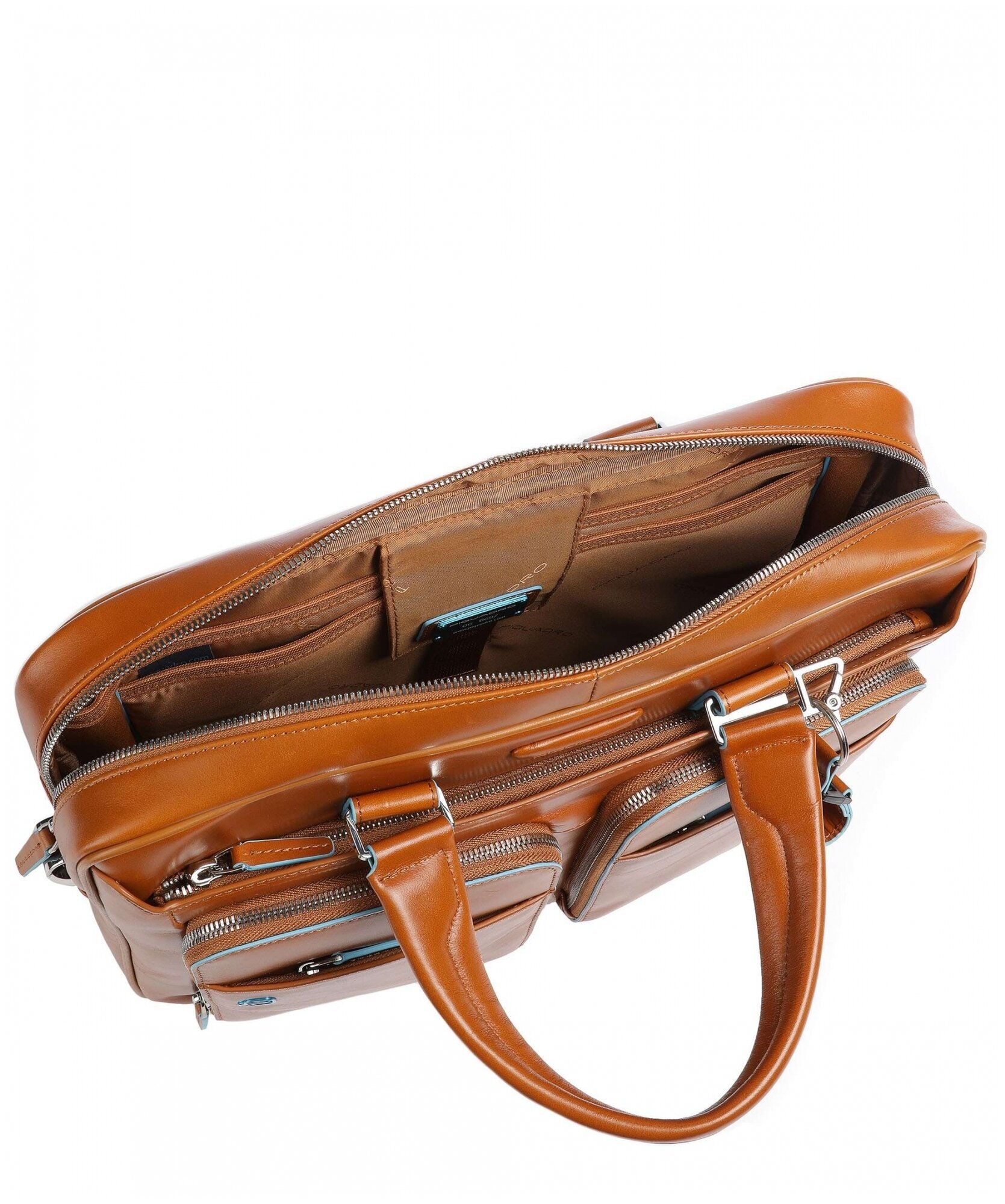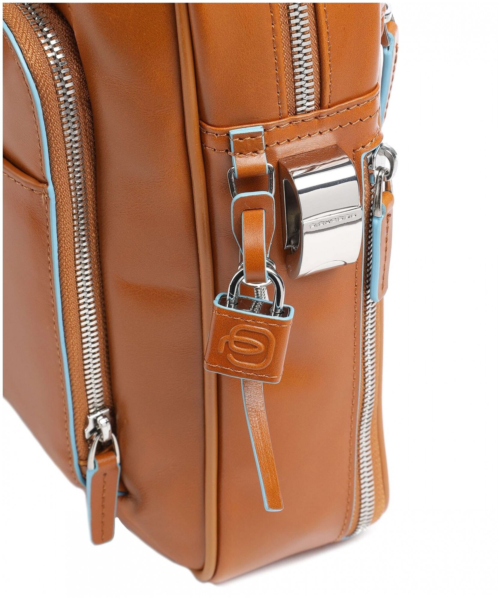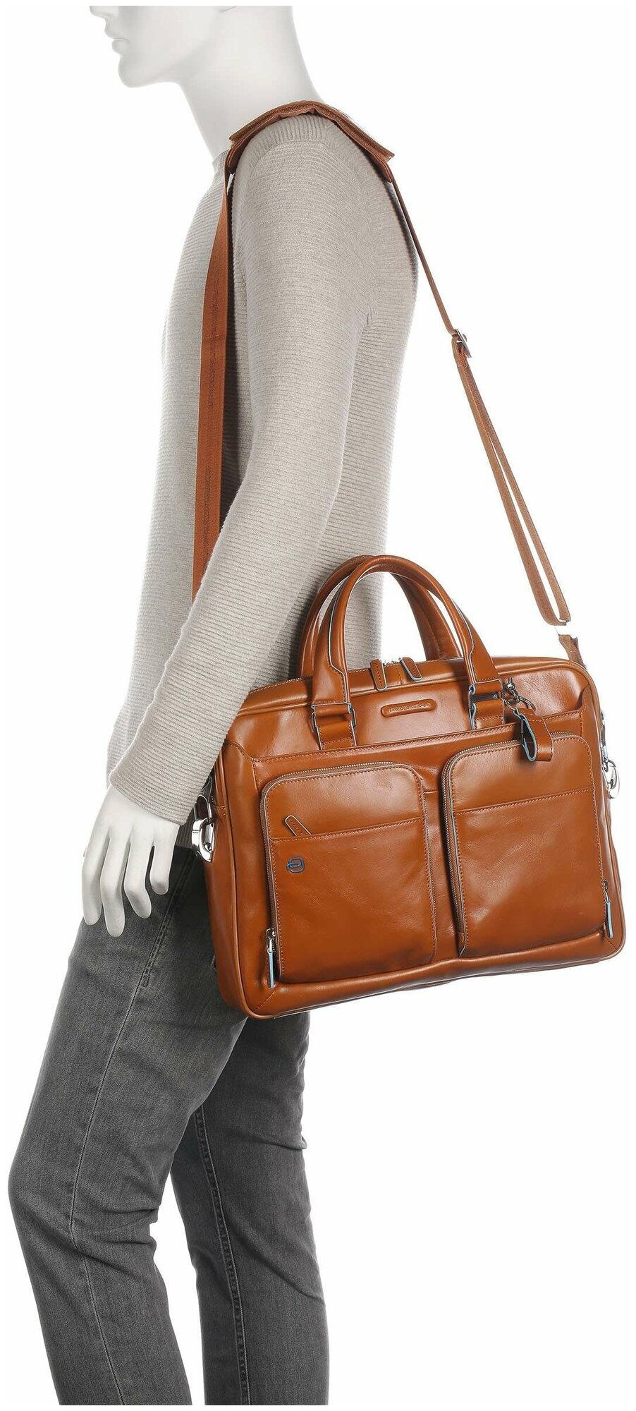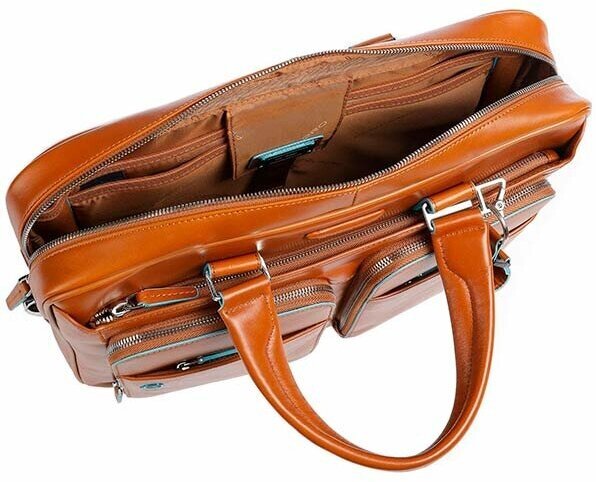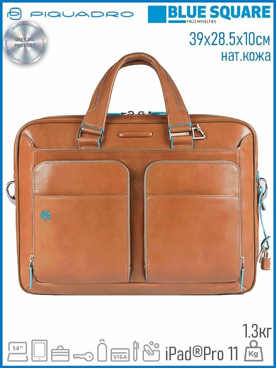 Кожаная сумка с ручками и плечевым ремнем из коллекции Piquadro Blue Square. Абсолютный хит в линейке продуктов пиквадро. Сумка имеет множество карманов и отсеков, в специальном отделении поместится 15 дюймовый ноутбук и планшет, а внутренний карман на молнии прекрасно подойдет для особо важных вещей. Узнаваемый дизайн и бирюзовая окантовка выделяет данную сумку из общей массы.