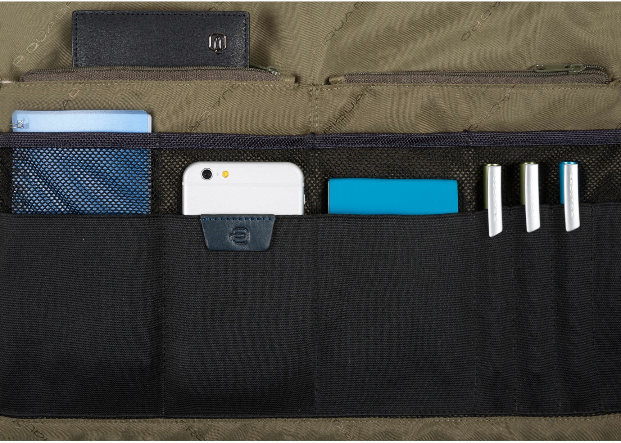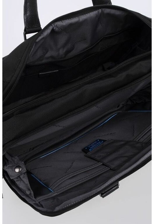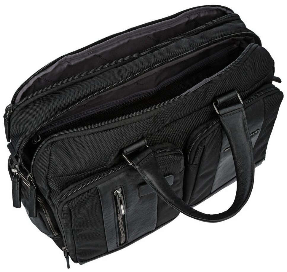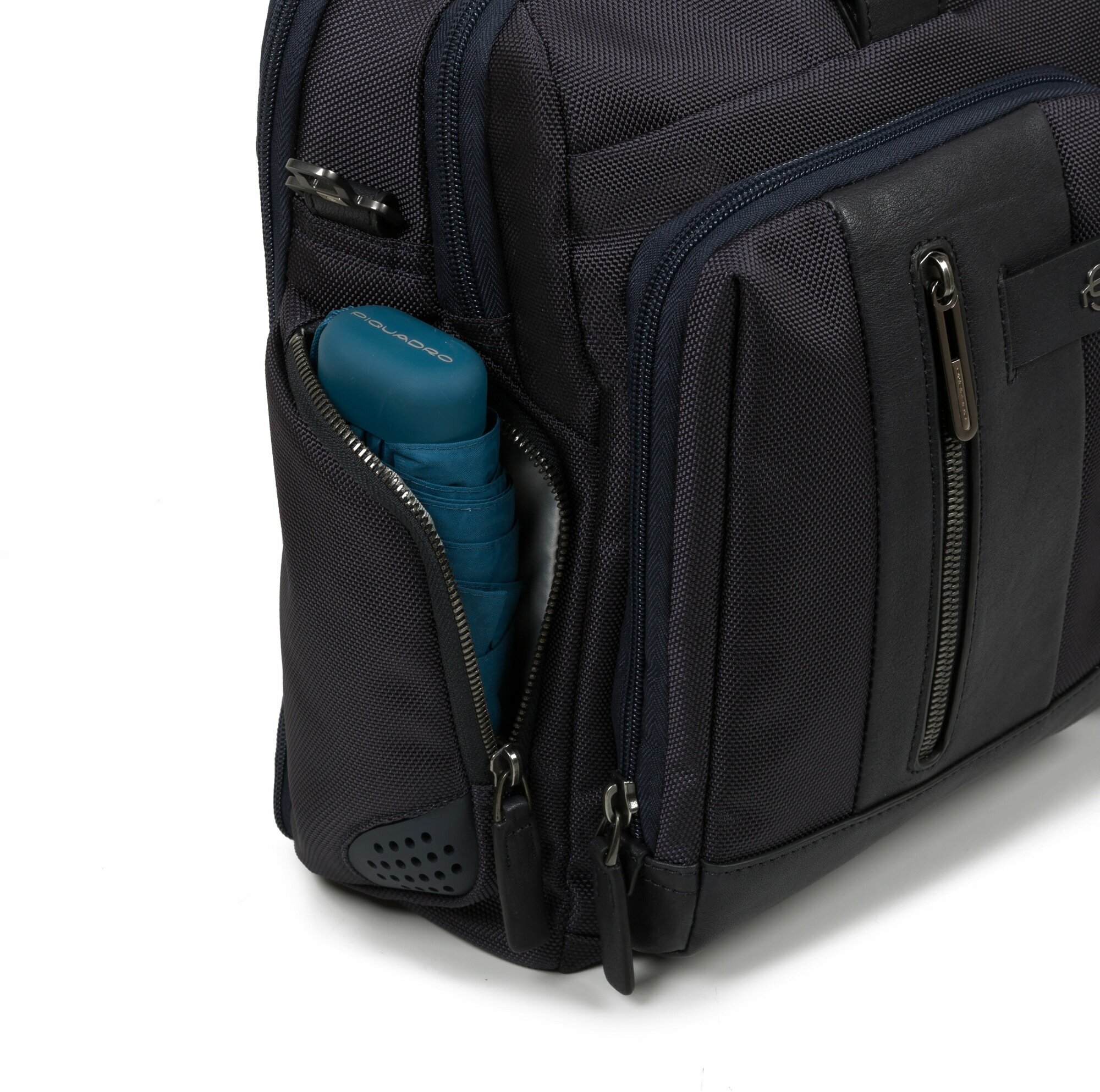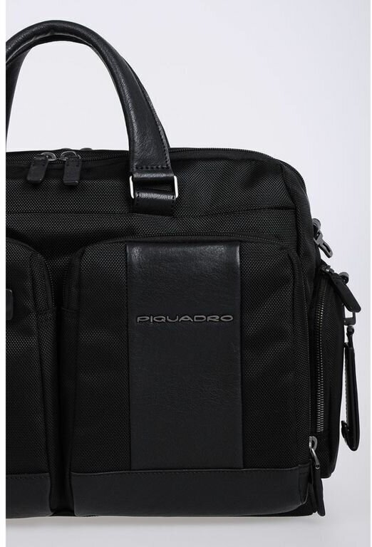 Мужская сумка из новой коллекции Piquadro Brief. Изготовлена из высокопрочного нейлона и мелкозернистой телячьей кожи с использованием качественной металлической фурнитуры. Имеет два отделения с отсеком для 15.6 дюймового ноутбука и планшета, кармашки для телефона и письменных принадлежностей, боковые карманы для зонта и бутылки, передние карманы на молнии, крепеж на дорожную сумку и съемный плечевой ремень. Отличный вариант сумки для небольших командировок и на каждый день.