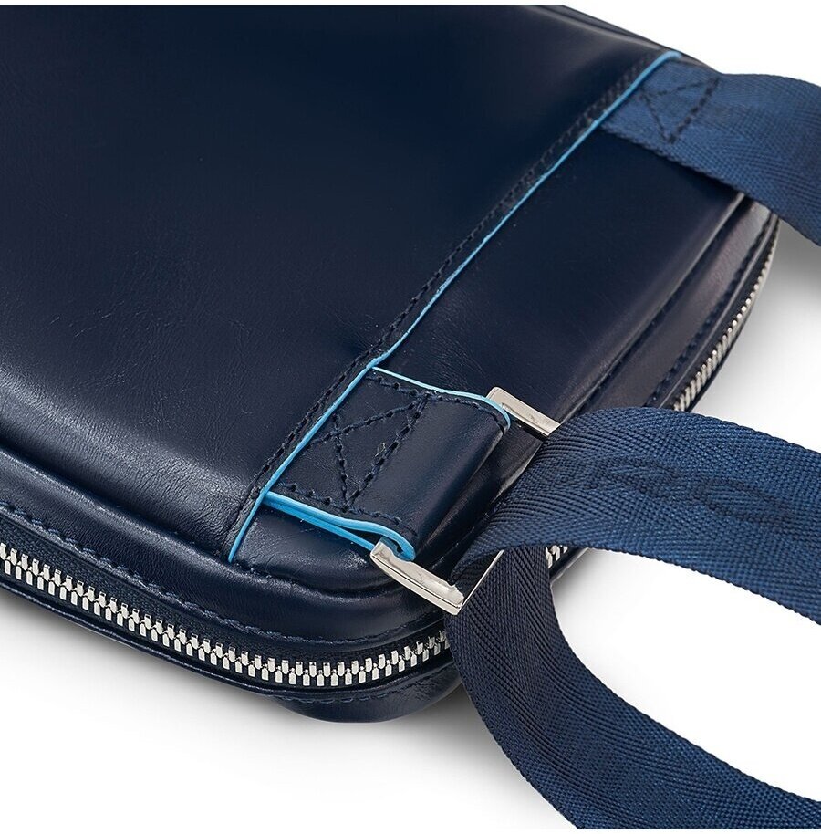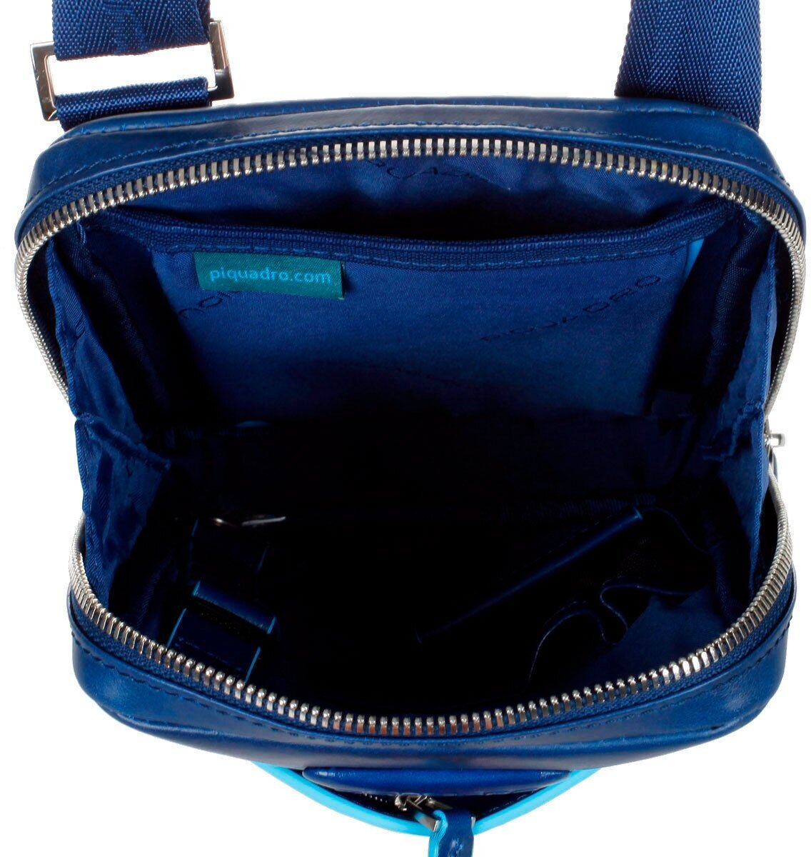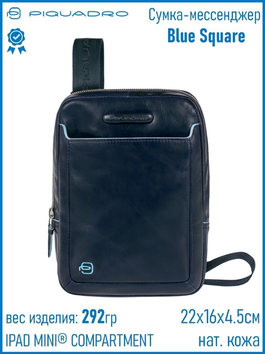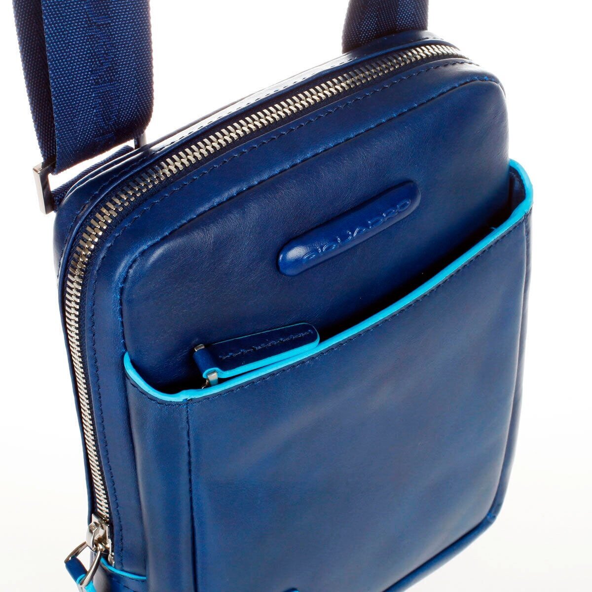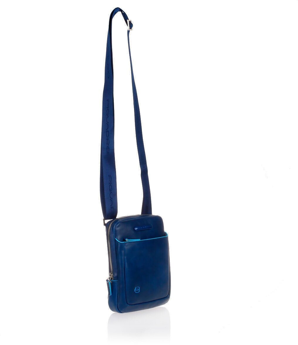 Кожаная сумка с плечевым ремнем из коллекции Piquadro Blue Square. Имеет одно отделение, внутренний карман для iPad mini и внешний карман на молнии. Отличный вариант для переноски небольших вещей, таких, как паспорт, кошелек, водительские права и ключи.