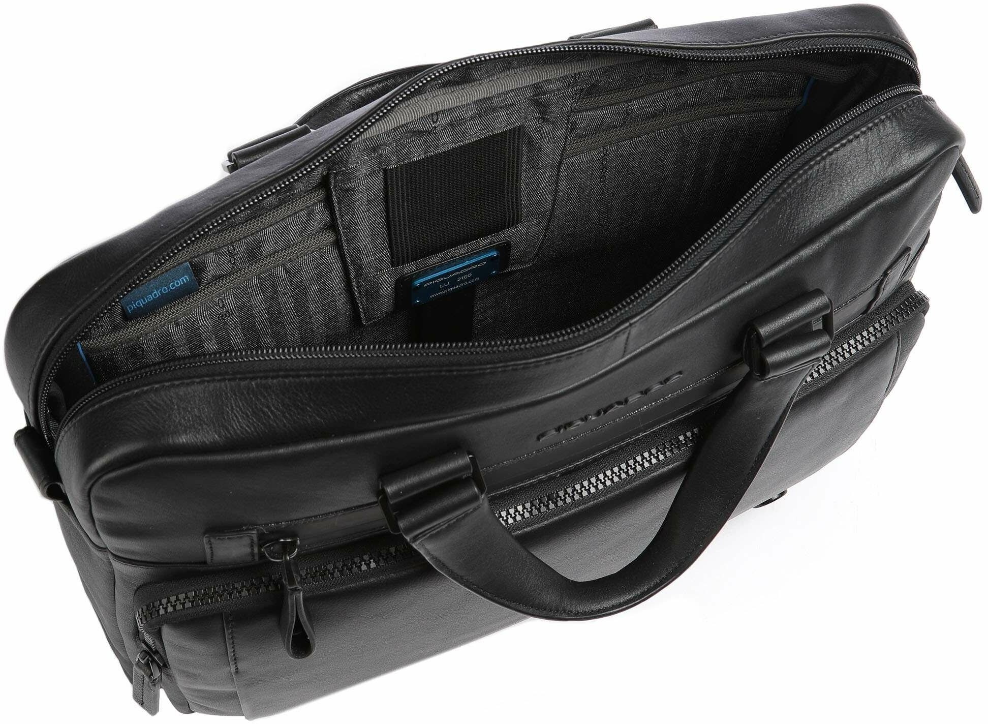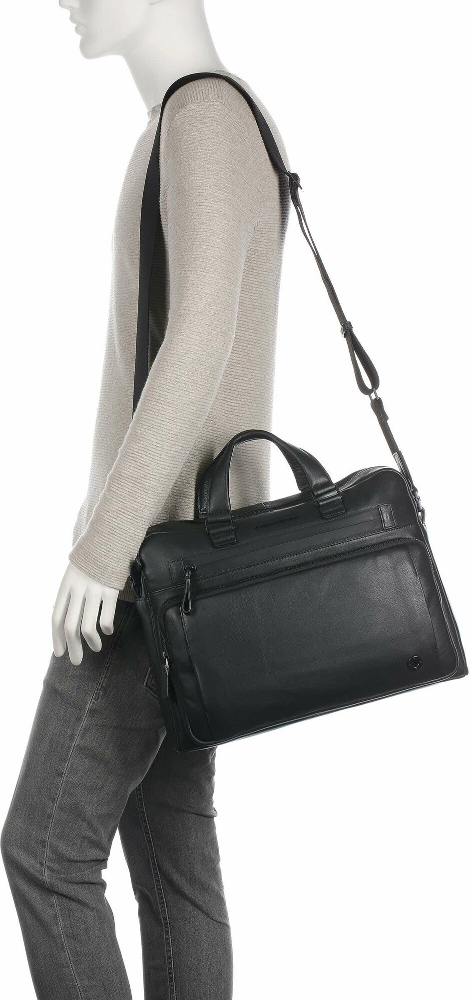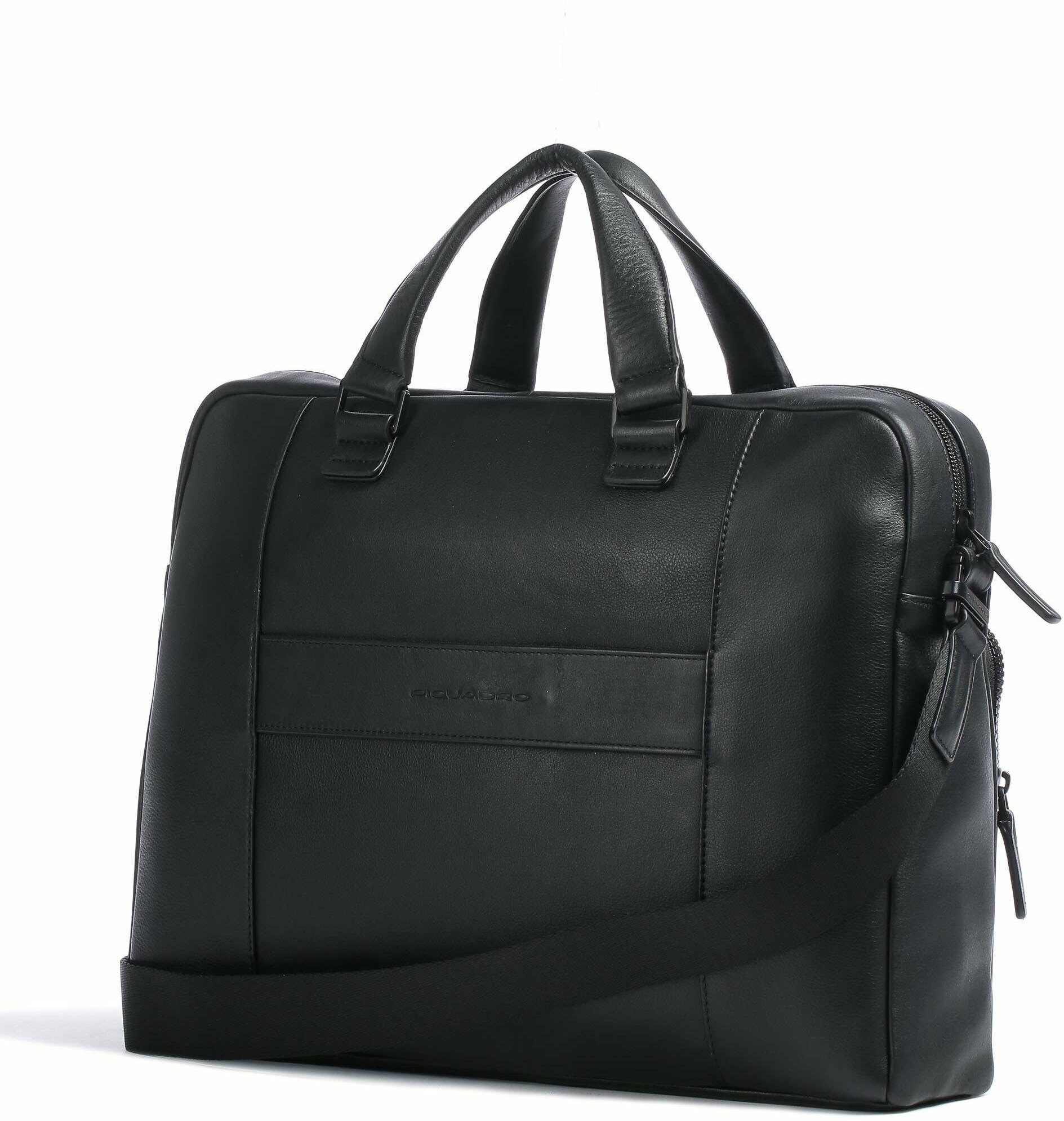 Мужская сумка с ручками от итальянской компании Piquadro выполнена из натуральной кожи, имеет отделение для ноутбука до 15,6 дюймов, отделение для планшета, крепление к ручке багажной сумки