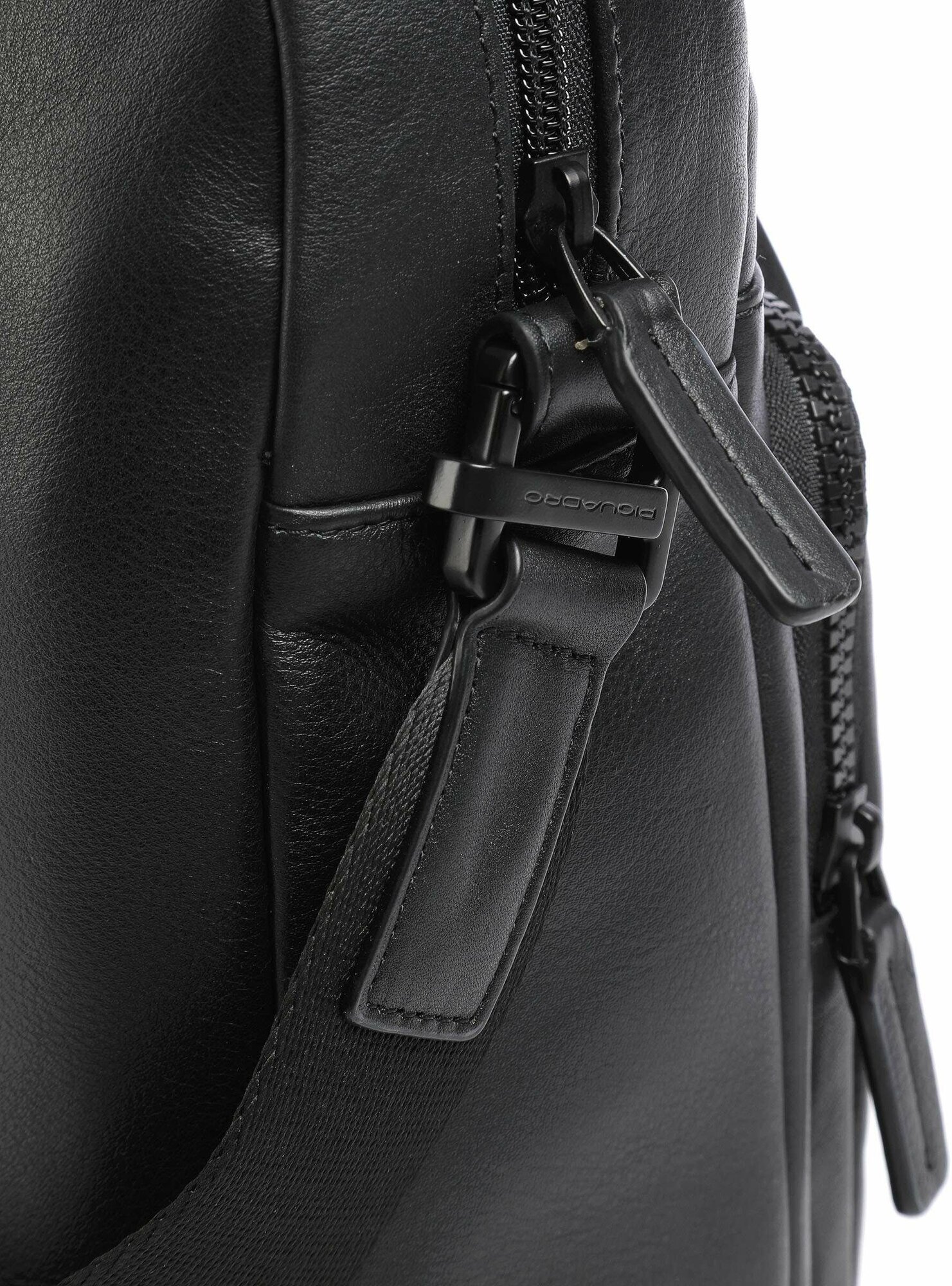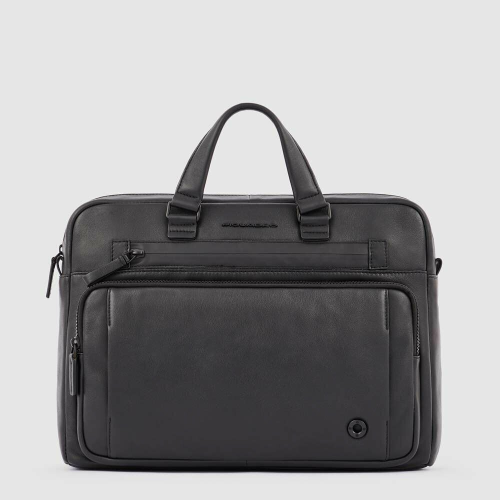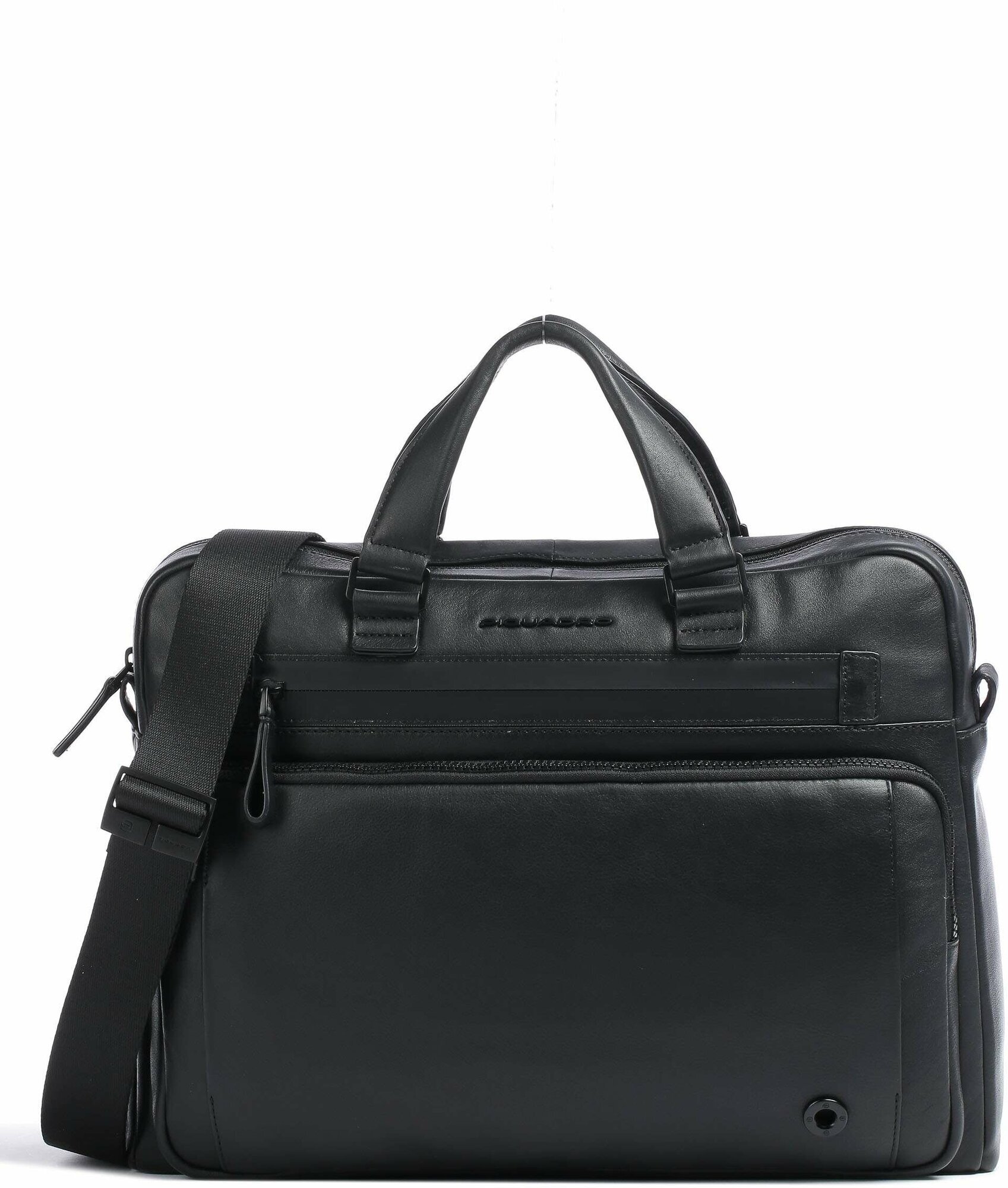 Мужская сумка с ручками от итальянской компании Piquadro выполнена из натуральной кожи, имеет отделение для ноутбука до 15,6 дюймов, отделение для планшета, крепление к ручке багажной сумки
