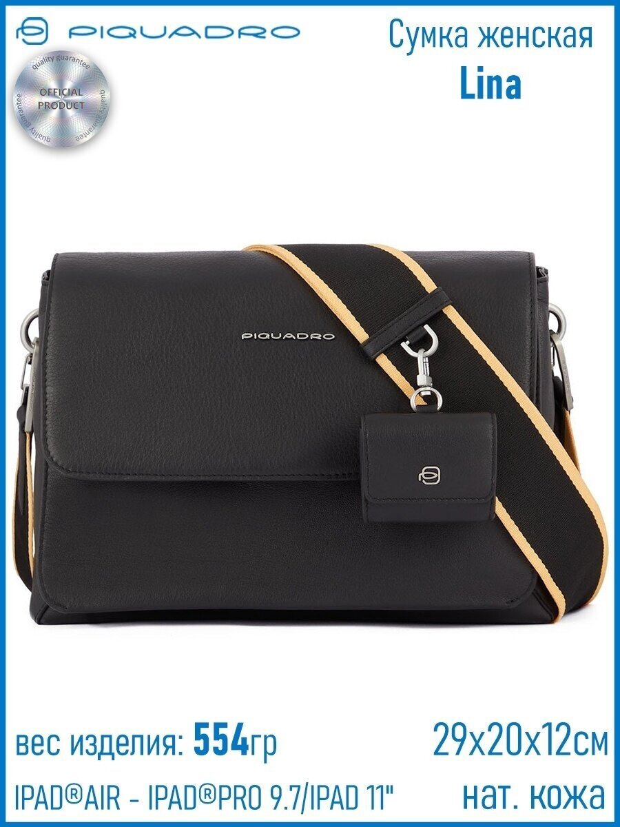 Стильная кожаная женская сумка из коллекции Piquadro Lina. Сумка имеет три отделение, одно из них с карманом на молнии и отсеком для iPadAir - iPadPro 9.7/iPad 11", телефона и письменных принадлежностей. Стильный широкий плечевой ремень с окантовкой оборудован съемным чехлом для наушников.