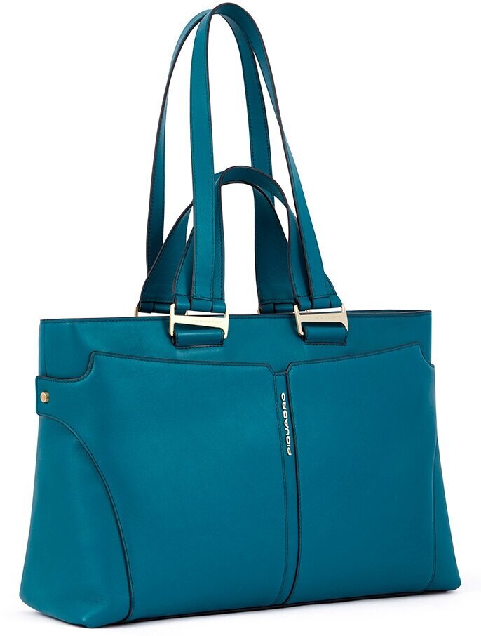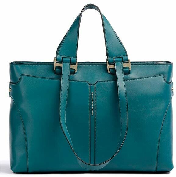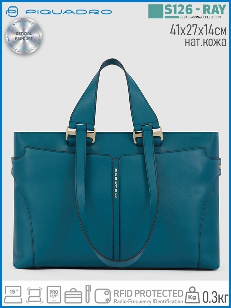 Женская кожаная сумка с карманами для ноутбука и планшета