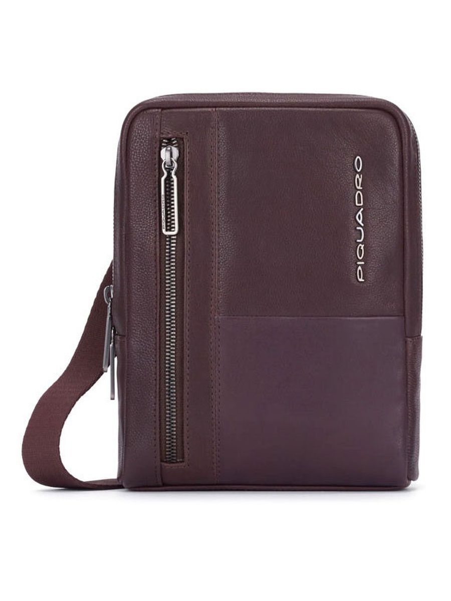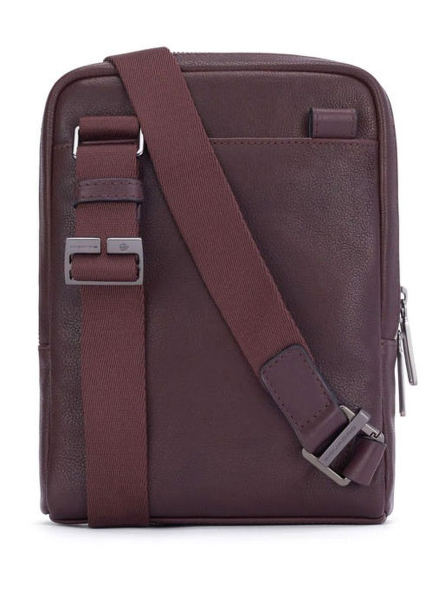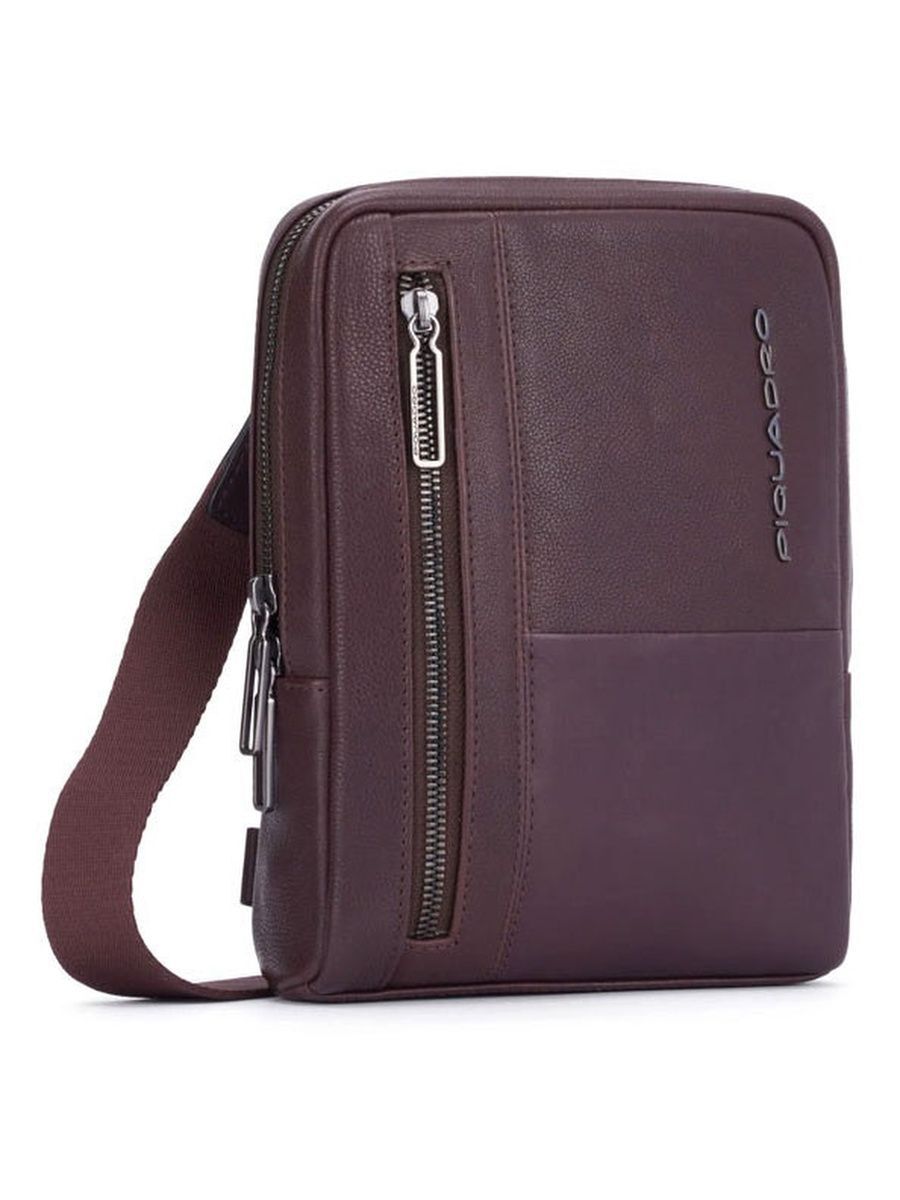 Вертикальная сумка на плечевом ремне Piquadro выполнена из натуральной телячьей кожи с легким глянцевым блеском и отделана голубым кантом. Одно основное отделение, отделение для mini Ipad, карман на молнии, съемное крепление для ключей.