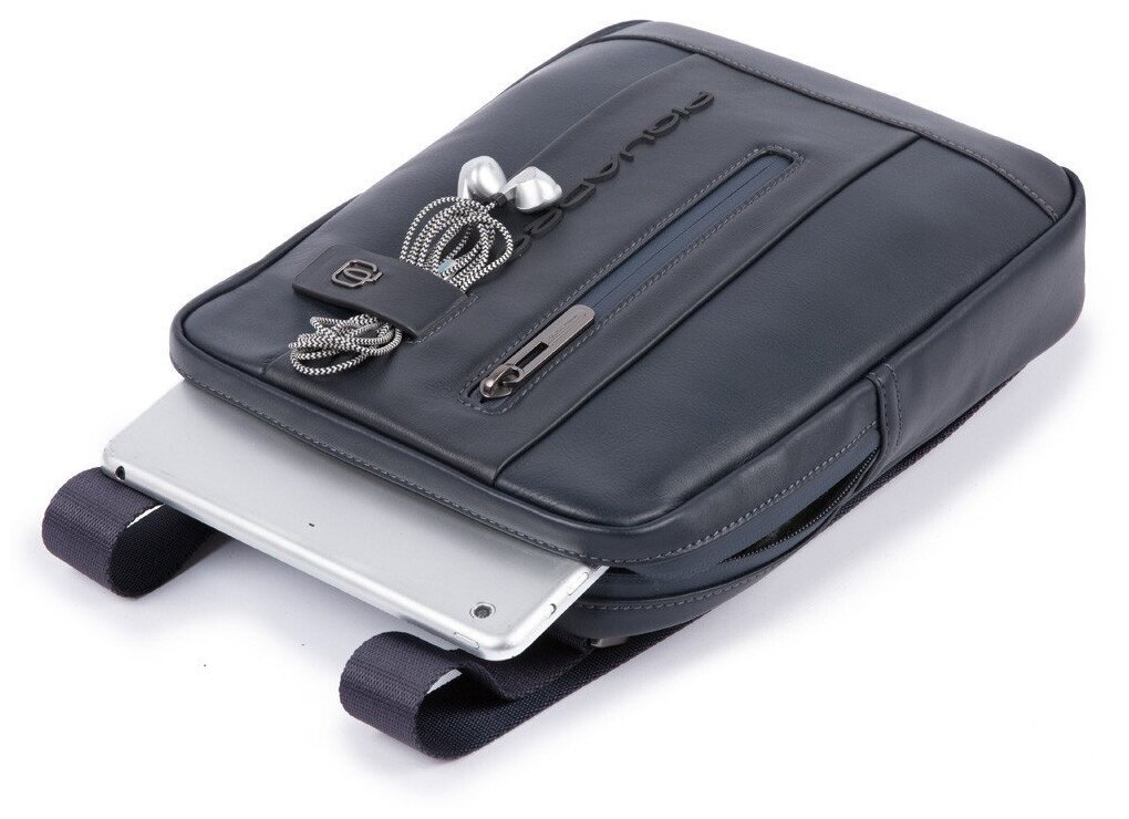 Компактная кожаная сумка через плечо из новой коллекции Piquadro Urban. Сумка изготовлена из гладкой телячьей кожи с использованием черненой матовой фурнитуры. Имеет одно отделение с карманом для iPad mini. На передней части расположен вертикальный карман на молнии и крепление для наушников. Это одна из самых популярных моделей сумок через плечо, оптимальные размеры сумки с удобством позволяют использовать её каждый день для переноски ключей, кошелька, водительских прав и прочих важных вещей.